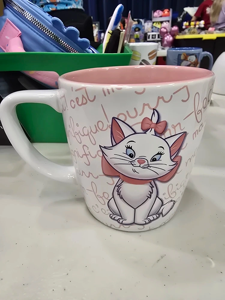 A cute mug featuring Marie from the Aristocats! It has a white exterior with pink interior, and Marie is featured on the front