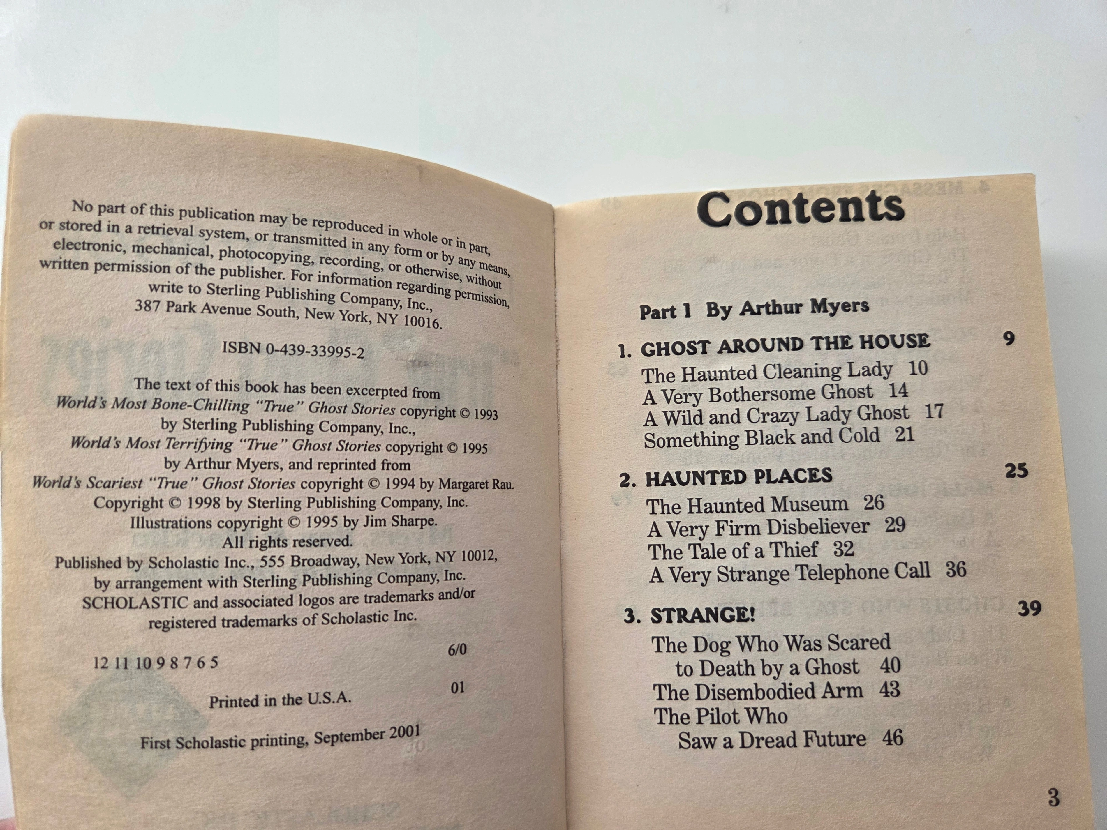 Compact pocket paperback filled with classic spooky tales – perfect for a quick chill on a cozy evening or for a young reader who loves ghost stories. This is the Scholastic school market edition with 84 “true” ghost stories by Arthur Myers, Margaret Rau, and John Macklin, illustrated in black and white by Jim Sharpe.