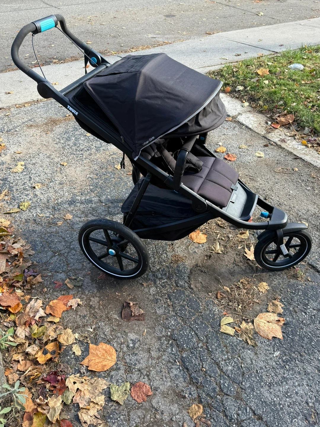 Selling a Thule Glide 2 jogging stroller in black. It's in great shape and ready for your runs or walks! Includes a rain cover for those unpredictable weather days as well as installed brake kit. The stroller also has a spacious cargo basket underneath for all your essentials.