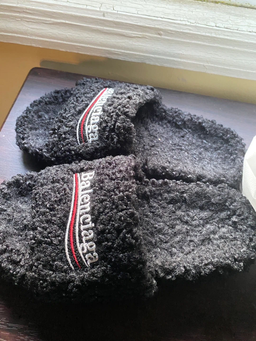 Selling a pair of real Balenciaga furry slides. They are in great condition and super comfortable! And only used for like 5 days