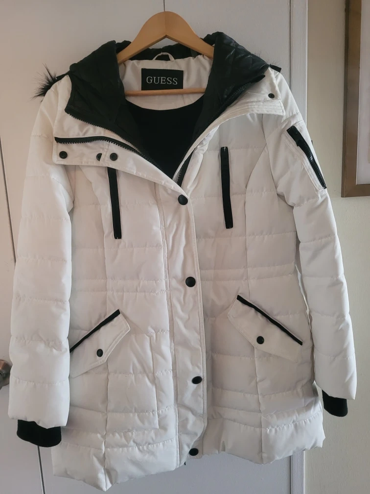 Buy & SellGuess White Winter Jacket - Size L🥕🎯Guess White Winter Jacket - Size L🥕🎯$90Selling a Guess winter jacket in white. It's a size L and has a black faux fur hood. Great for keeping warm during the colder months!ConditionLike newSizeL BrandGuess0 chats·1 favorites·24 viewsSELLERverifiedOrsi 0722Bayview Village1000+147 reviewsWHERE TO MEETCheck Location