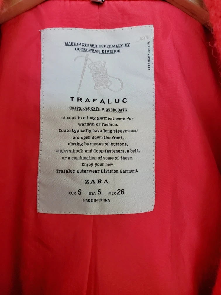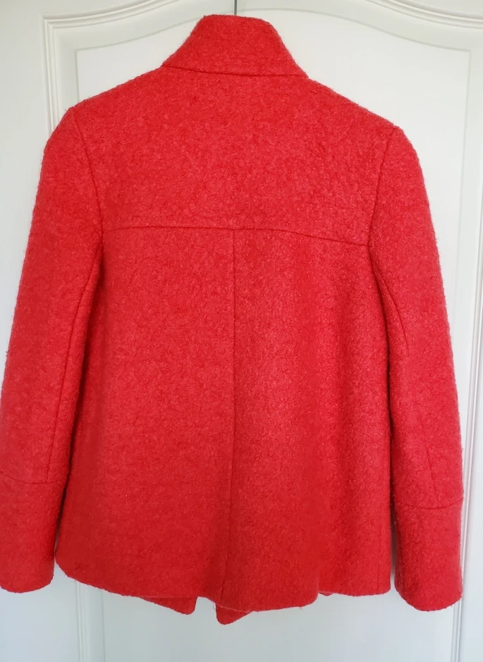 Bright and stylish coral color coat/ jacket from Zara in great condition. Standup collar and two front pockets. Only used once or twice. Size S, but can fit size M, no stains or damage.