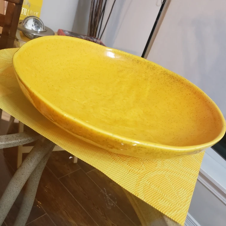 Here's a lovely yellow serving bowl, perfect for adding a pop of colour to your table! It's in great condition and ready to hold your salads, snacks, or whatever you fancy