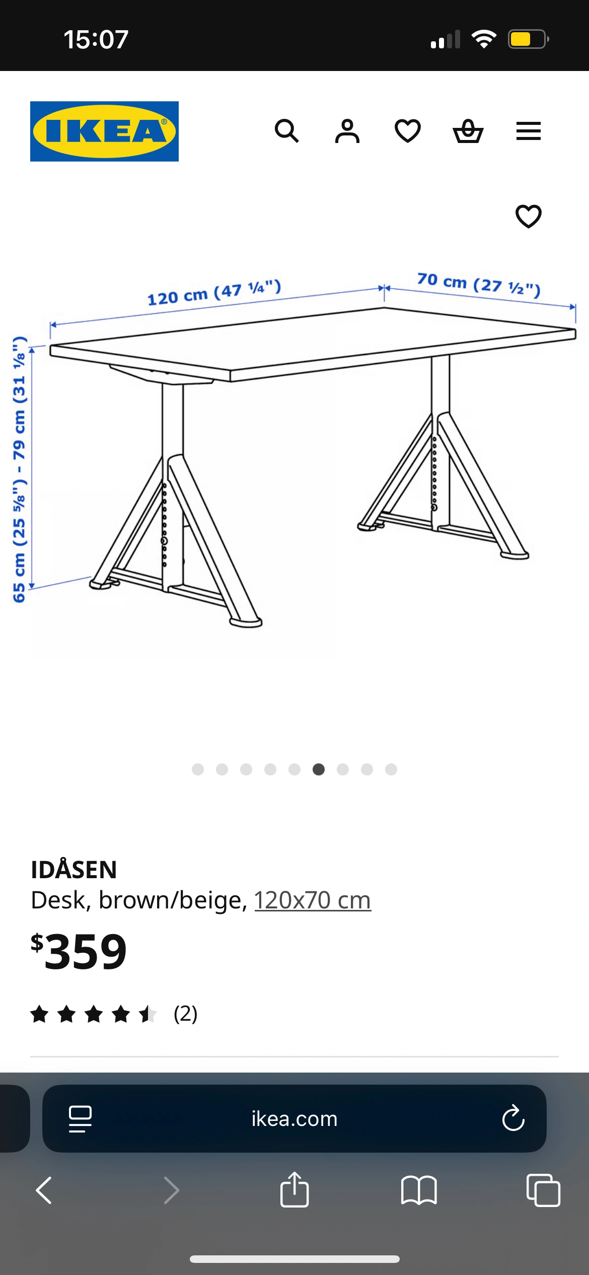 IKEA IDÅSEN desk, brown & grey, 120x70cn
