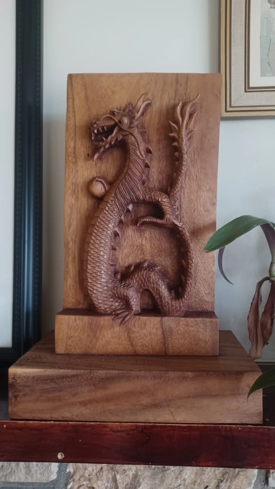Beautifully detailed wooden dragon carving. A unique piece for any collector or as a decorative item for your home. No broken pieces.