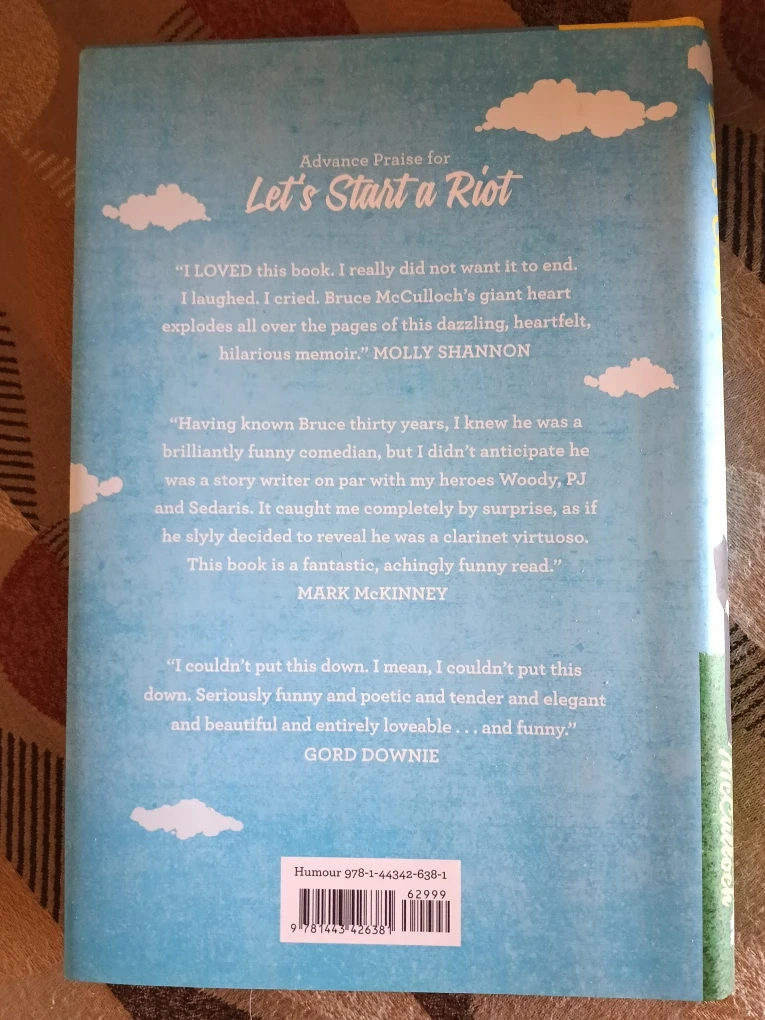 Selling a copy of "Let's Start a Riot: How a Young Punk Became a Hollywood Dad" by Bruce McCulloch. It's a humourous memoir that's received praise from Molly Shannon, Mark McKinney, and Gord Downie. If you enjoy a funny and heartwarming read, this book is for you