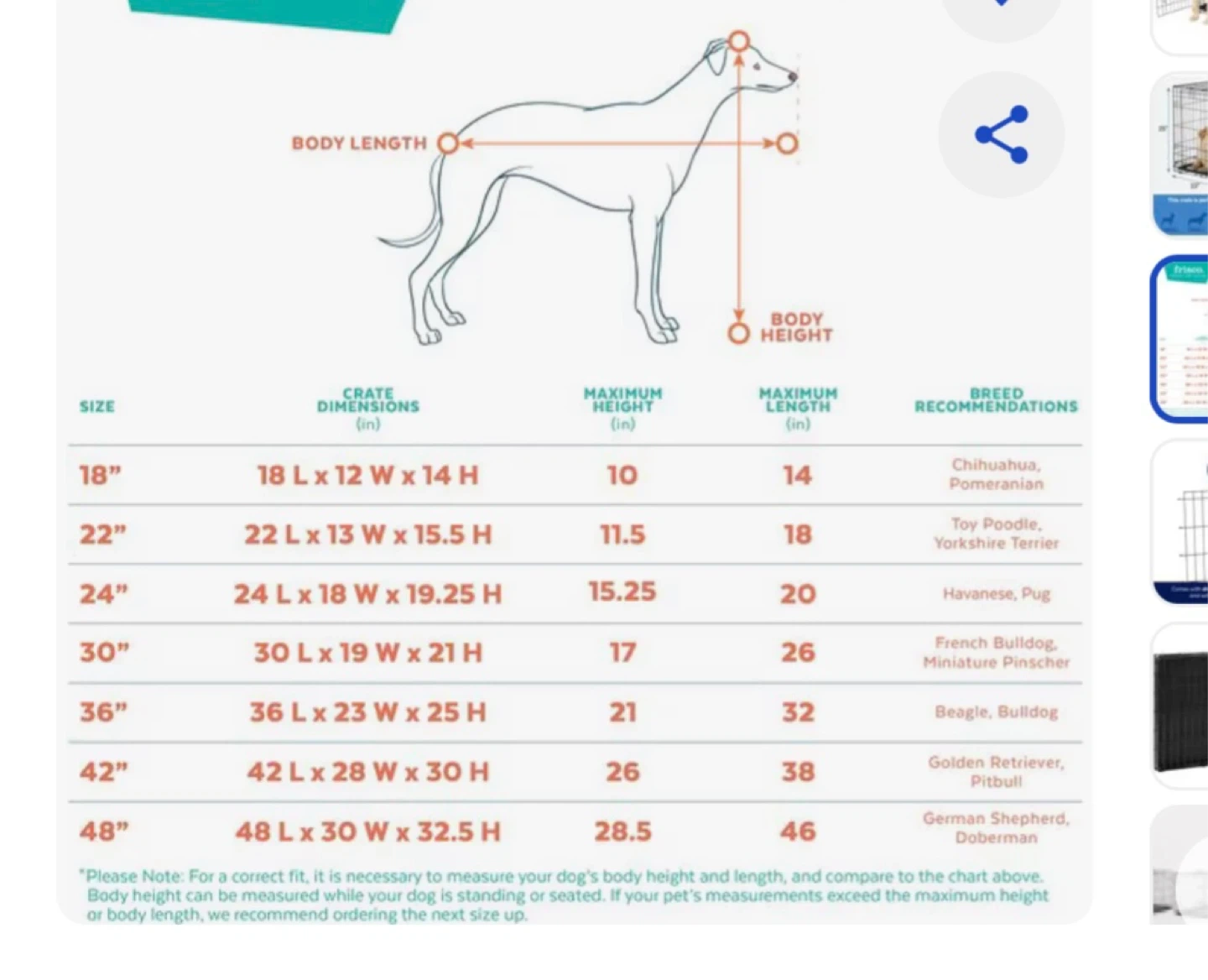 This new dog crate is perfect for medium and large dog breeds! It measures 36 inches in length, 23 inches in width, and 25 inches in height. It's ideal for breeds like Beagles and Bulldogs, offering a comfortable and secure space for your furry friend. Comes with mat for sleeping .