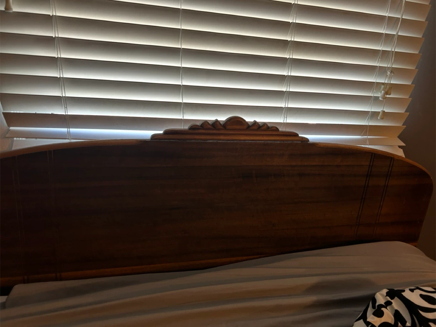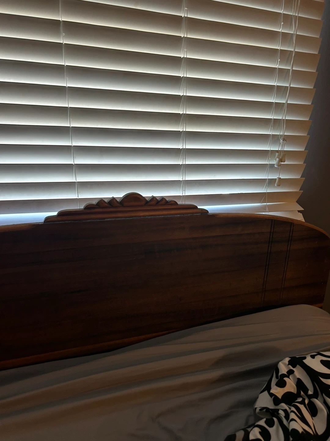 Selling a beautiful antique wooden headboard and vanity set. It has a lovely, classic design that would add a touch of elegance to any bedroom. The vanity includes a mirror and drawers for storage. Perfect for anyone who appreciates vintage furniture!