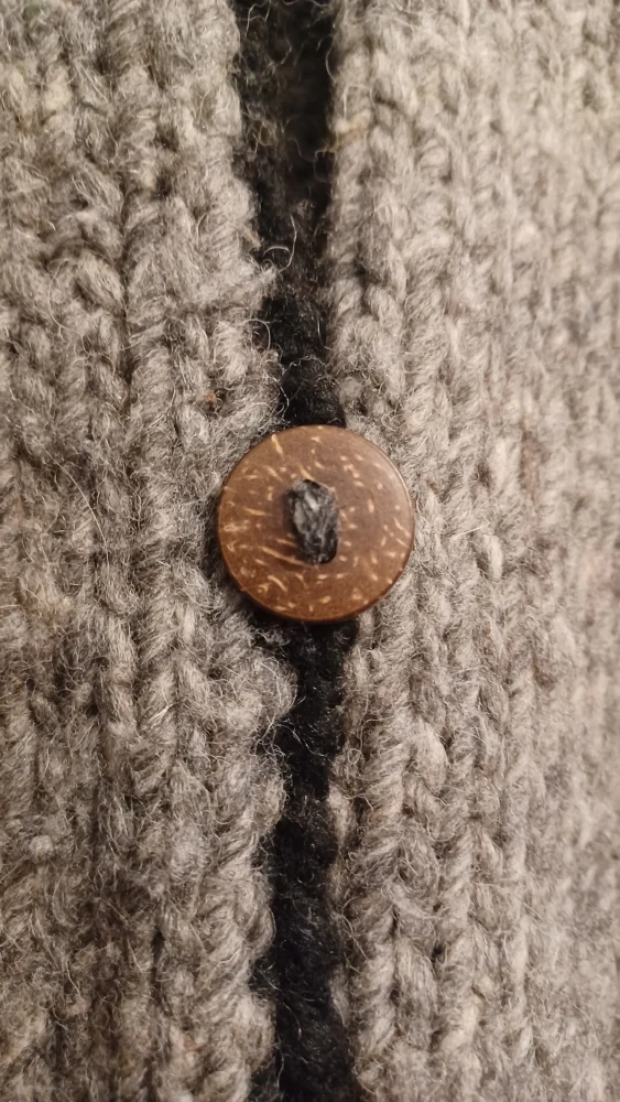 Cozy up in this unique, handmade cardigan! It's made from 100% wool and features a cool, textured design with leaf-like details & wooden buttons. Size XXL, perfect for layering on those chilly days!