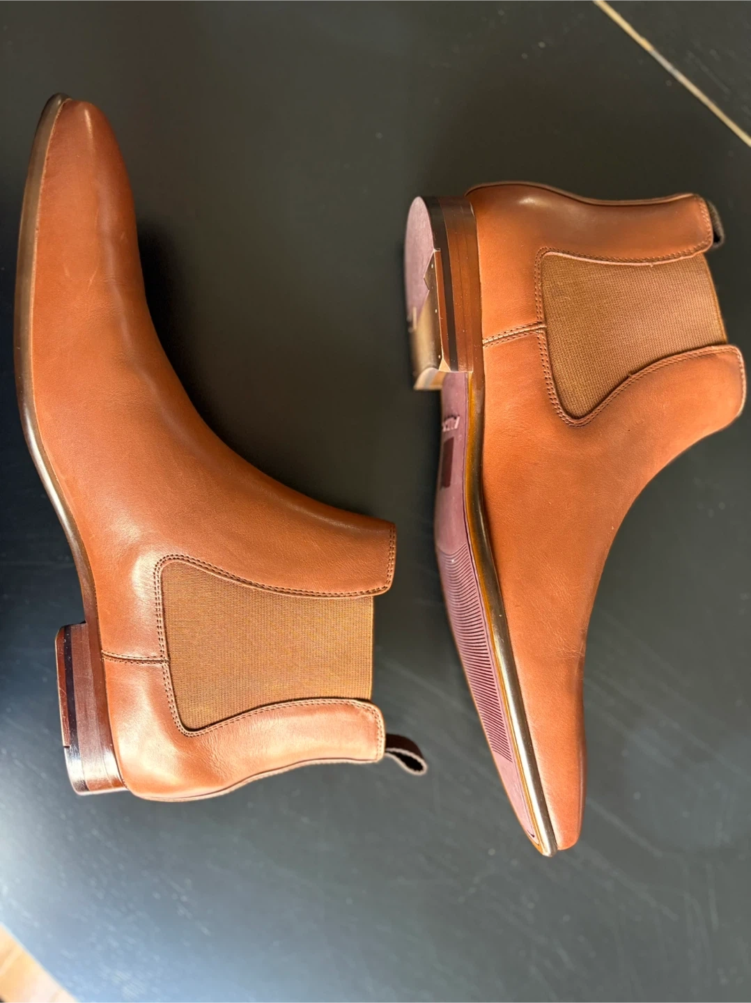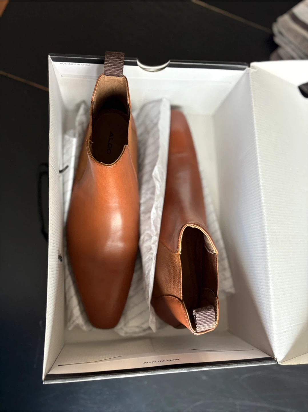 Elevate your wardrobe with this sharp pair of men’s brown dress shoes. They’ve never been worn — no creases, no scuffs, perfect condition. Classic, versatile style that works for the office, events, or any polished look.