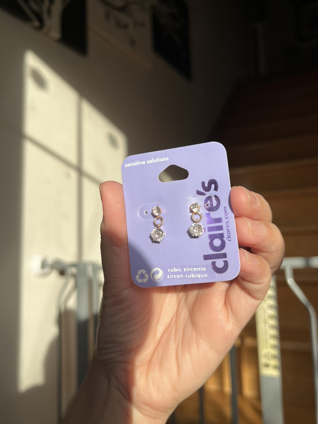 Selling a pair of Claire's drop earrings. These feature cubic zirconia stones and are in great condition!