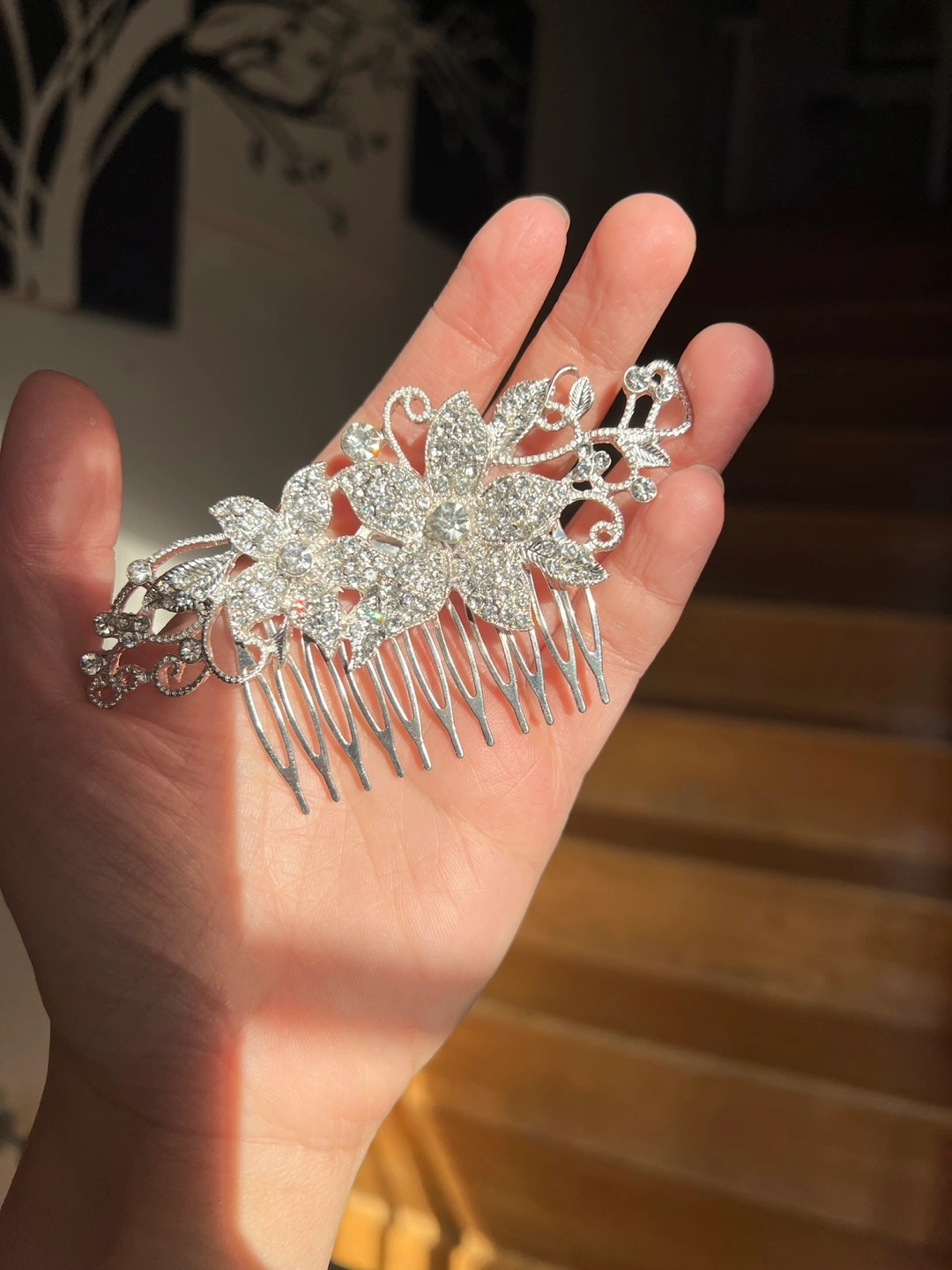 Sparkly rhinestone hair comb in great condition! Perfect for adding a touch of glam to any hairstyle. The silver colour makes it versatile for weddings, parties, or just because