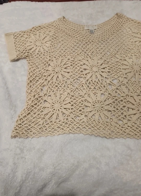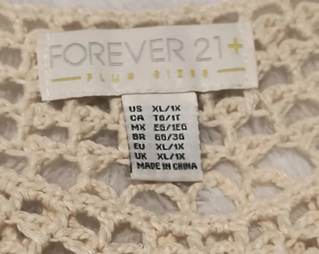 Selling a Forever 21+ crochet top. It's a size XL and has a beautiful, intricate design. Perfect for adding a touch of bohemian style to your wardrobe!