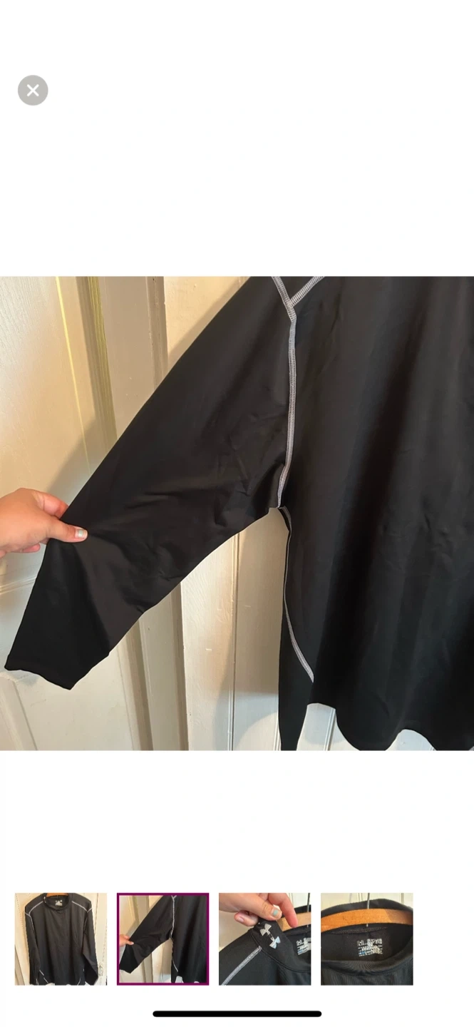 Under armour brand. Long sleeve cold gear thermal top. Black in colour. Size men’s 2x. Brand new condition minus logo is peeling on neck.