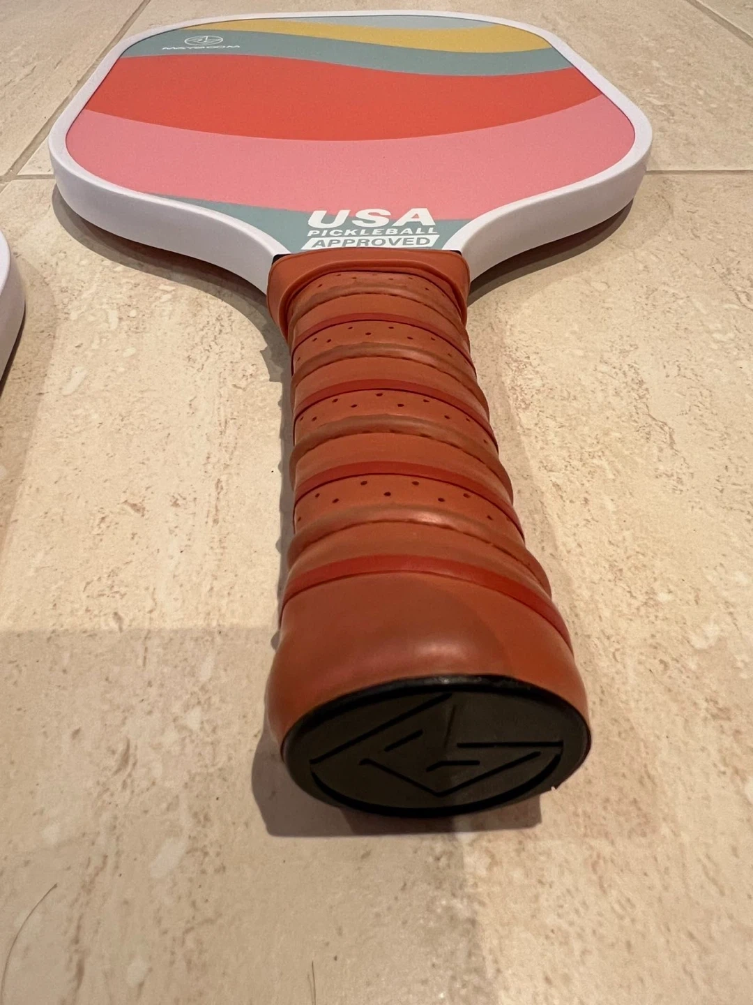 Selling a set of two MAYBOOM pickleball paddles, complete with pickleballs and a carrying case! The paddles are USA Pickleball Approved and feature a colourful, wavy design on the paddle face. Perfect for some fun on the court!