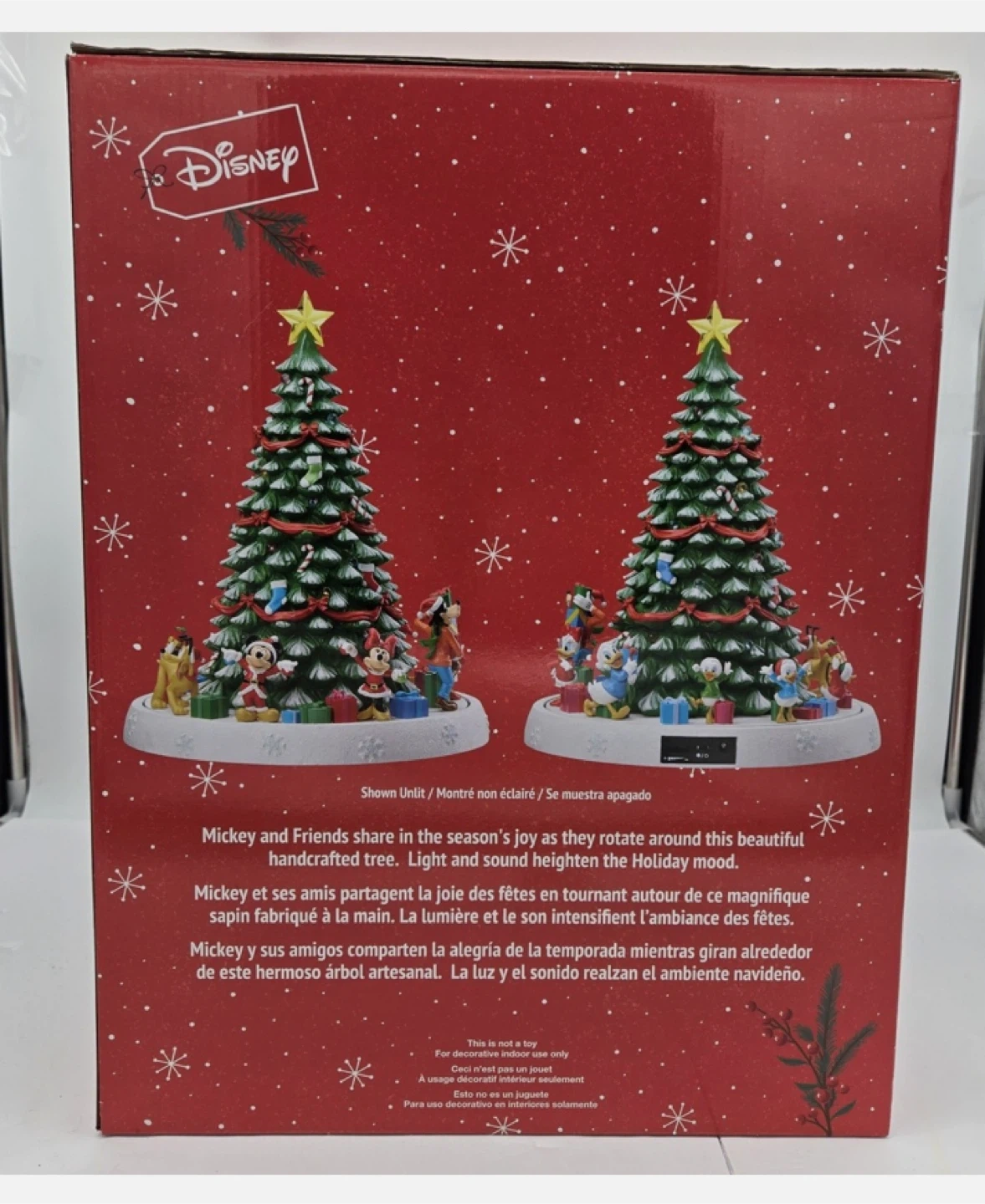 Selling a Disney animated Christmas tree that lights up and plays music! It features Mickey and his friends sharing in the season’s joy as they rotate around the tree. The light and sound heighten the holiday mood. Plays 8 classic holiday songs. Box included!