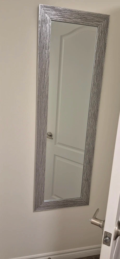 Selling a lovely silver framed wall mirror. It's in like new condition and would look wonderful in any room of your home. The frame has a nice textured design that adds a touch of elegance.