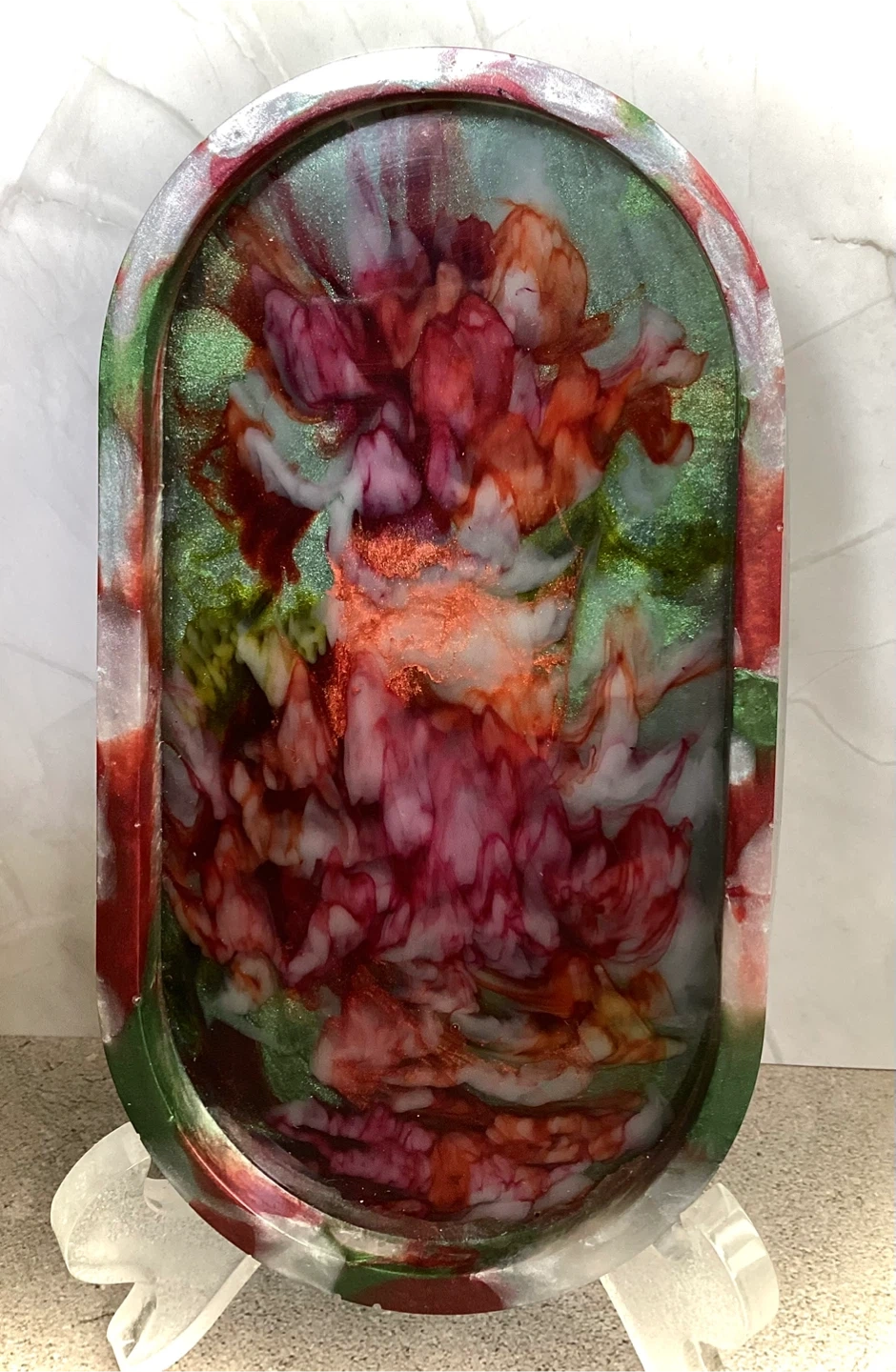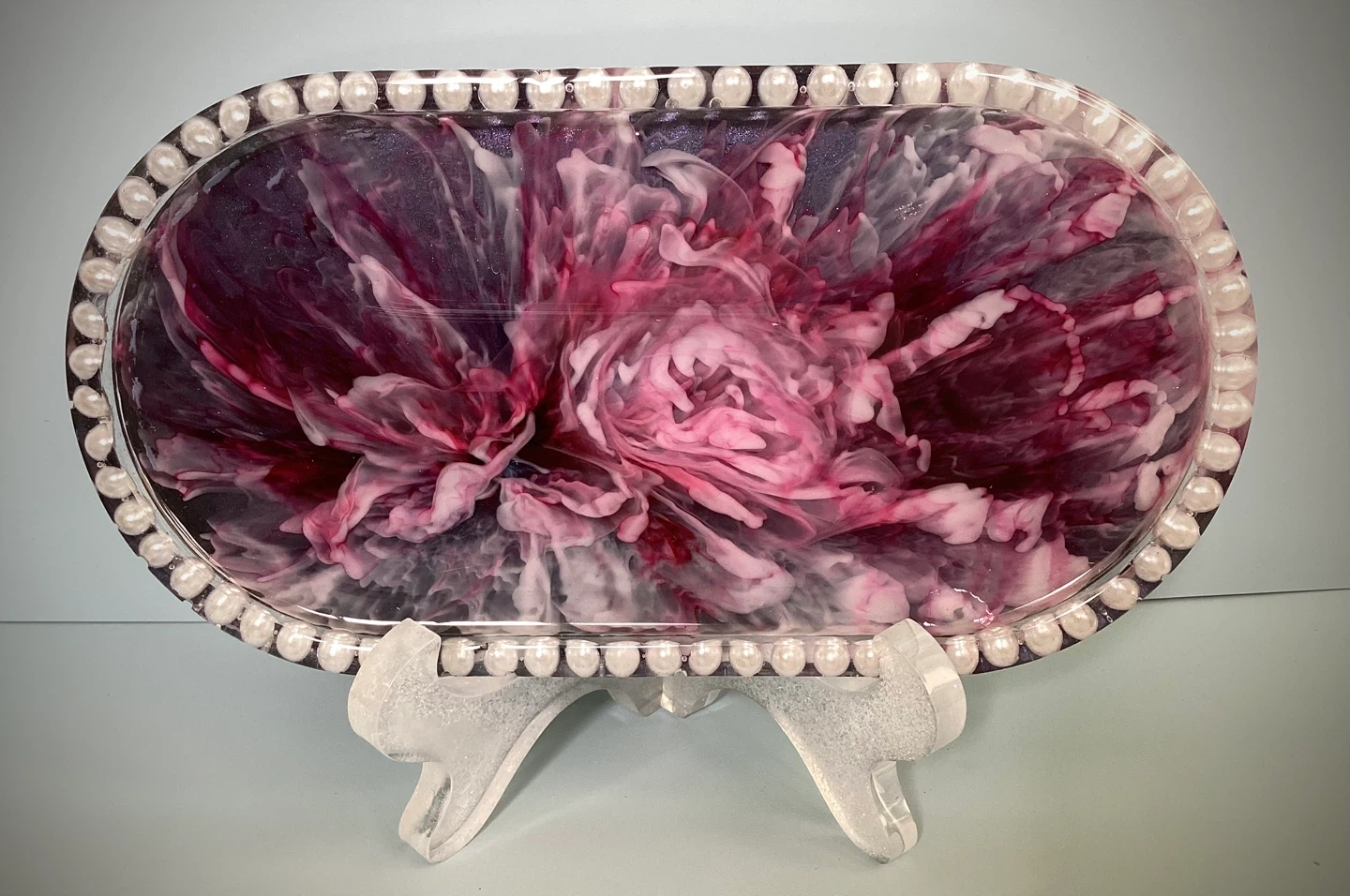 Selling a beautiful handmade resin art tray! Each tray features unique floral designs and vibrant colours. Perfect for adding a touch of artistry to your home