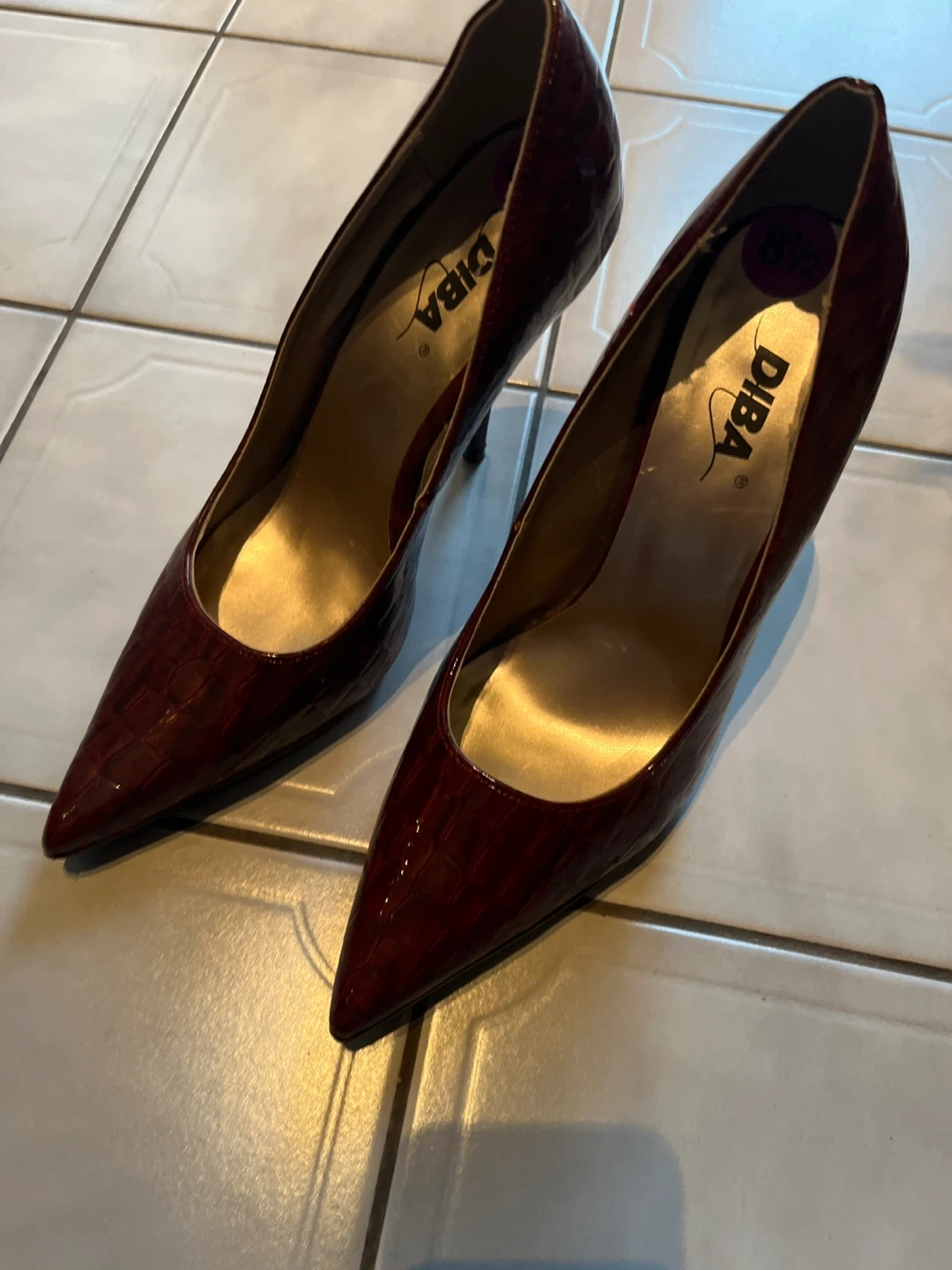 Selling a pair of Diba heels in a lovely burgundy colour. They feature a stylish pointed toe and a crocodile-like texture. Size 8.5.