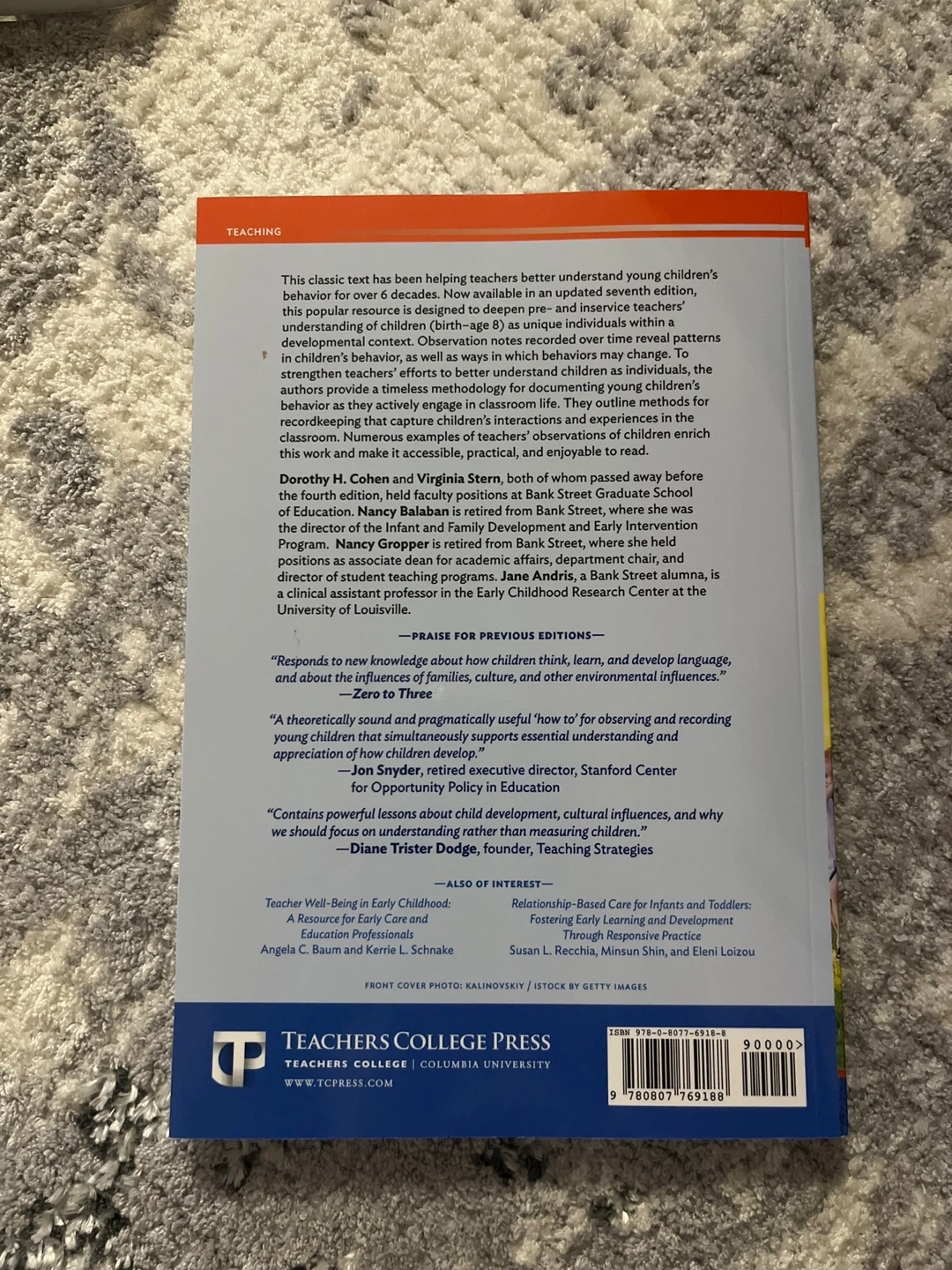 Selling "Observing and Recording the Behavior of Young Children," seventh edition. This book by Dorothy H. Cohen, Virginia Stern, Nancy Balaban, Nancy Gropper, and Jane Andris is a helpful resource for understanding children's behaviour