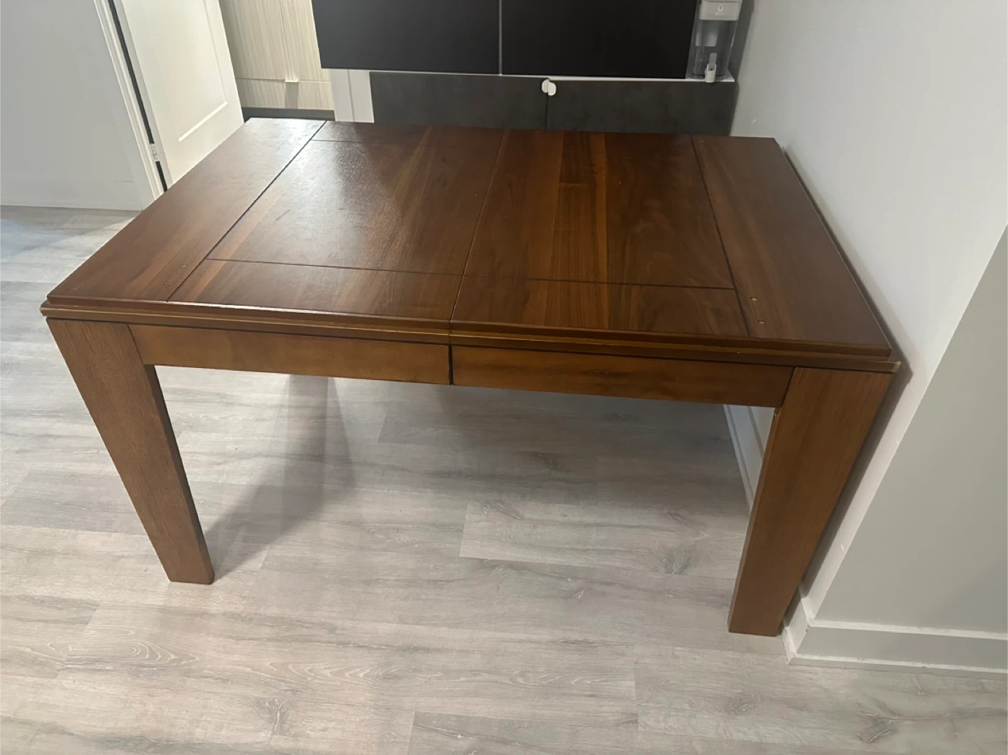 Selling a wooden dining table that's in great condition. It's a lovely piece that would fit well in any dining space. It has a beautiful finish and sturdy construction, perfect for everyday meals or gatherings with friends and family