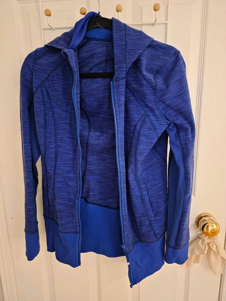 A comfy blue Lululemon Scuba hoodie! Perfect for layering up on those cooler days. It's in great condition and ready for a new home!