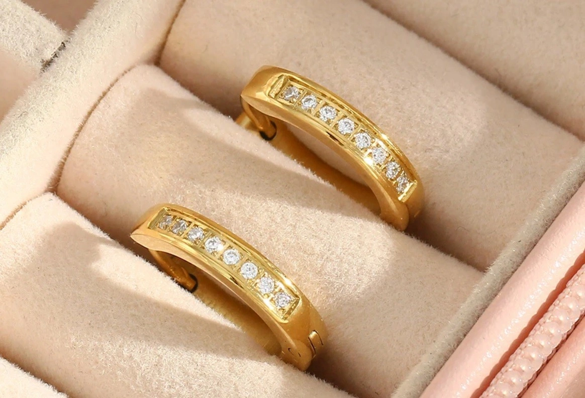 18K Gold Plated Huggie Hoop Earrings with Crystal (tarnish free)