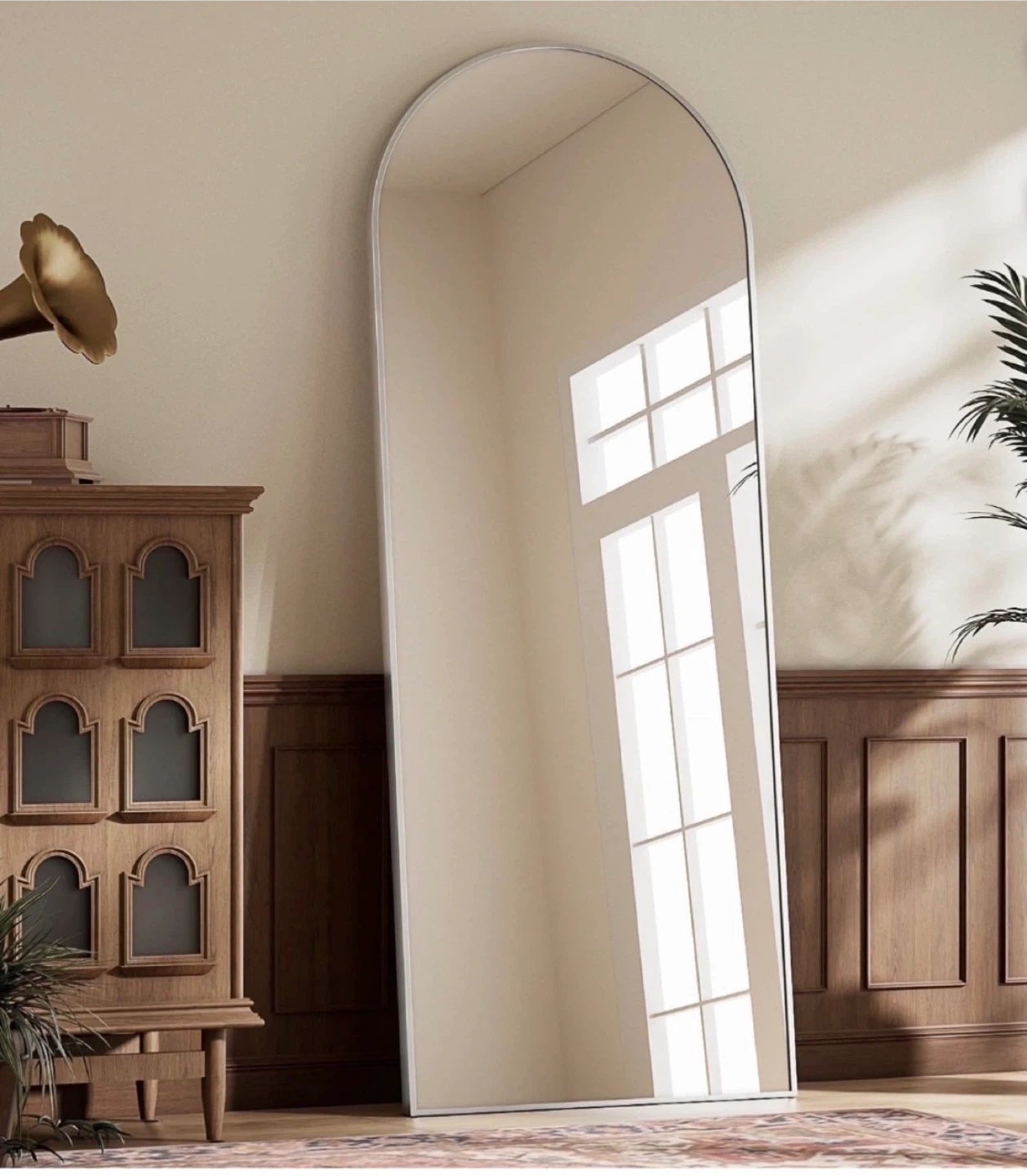Add a touch of elegance to your space with this arched full-length mirror! The sliver frame brings a stylish and modern look to any room. Perfect for bedrooms, living rooms, or entryways, this mirror is both functional and decorative