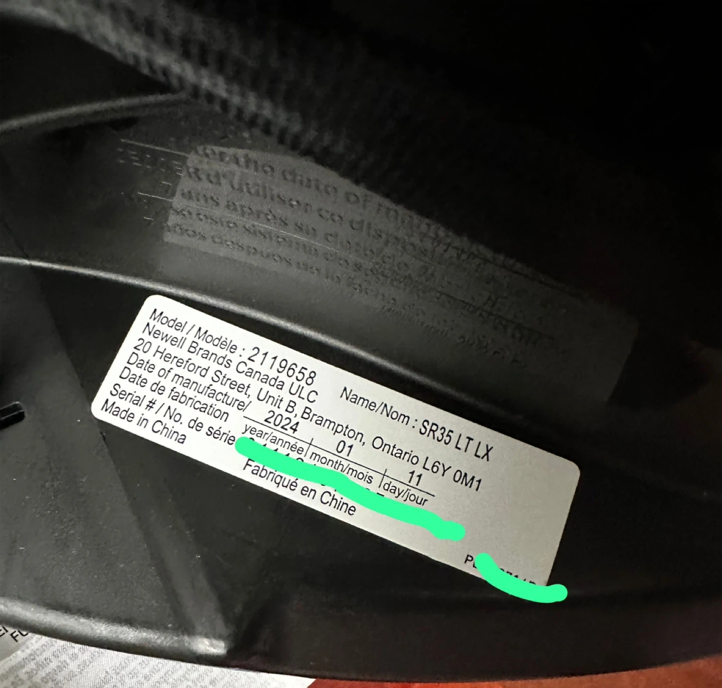 Selling a Graco infant car seat in great condition! It's black and features a cozy interior. The model number is 2119658, and the manufacturing date is 2024