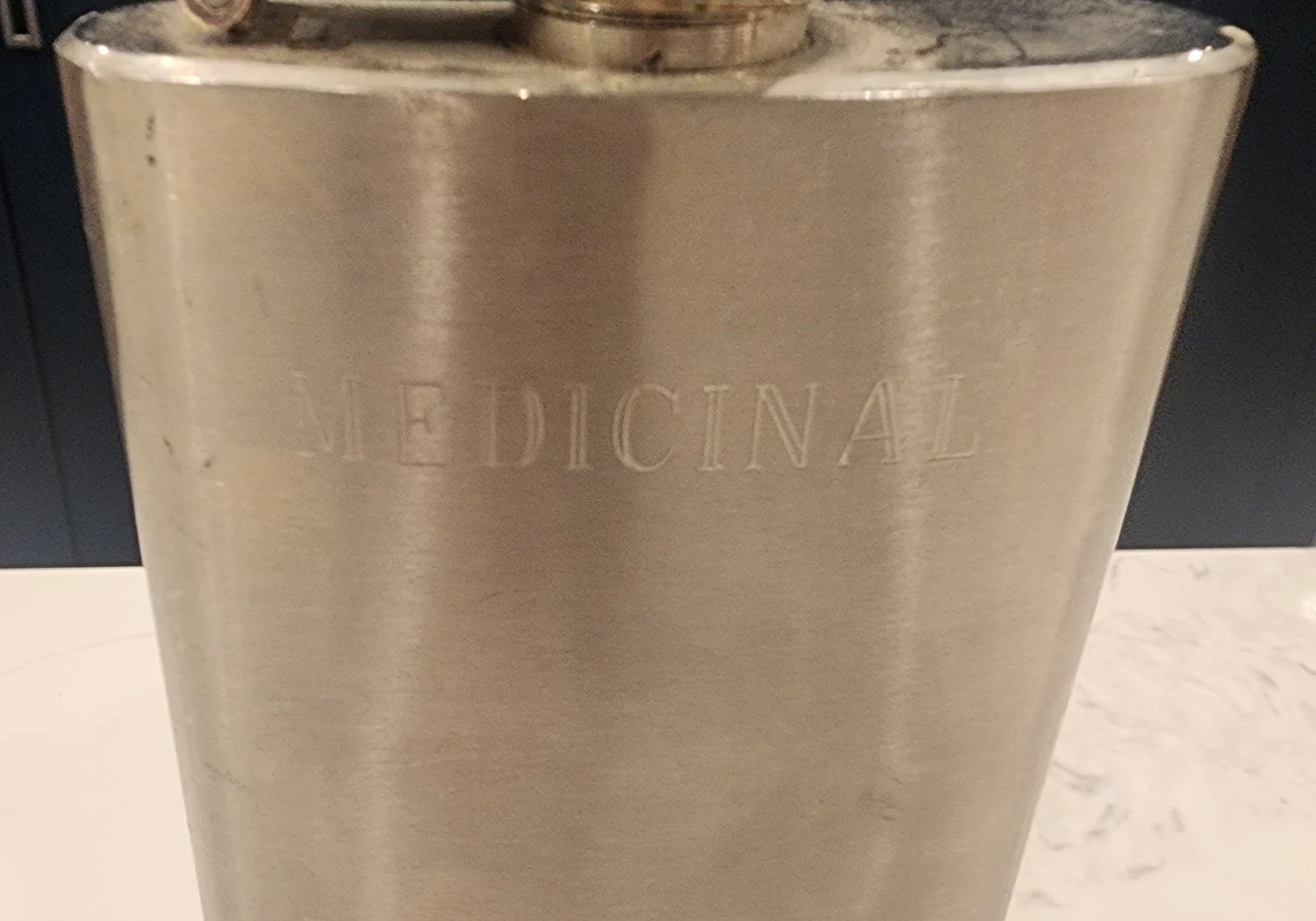 Selling a cool vintage stainless steel flask. It has the word 'MEDICINAL' engraved on it. It would make a great addition to any collection or for everyday use!
