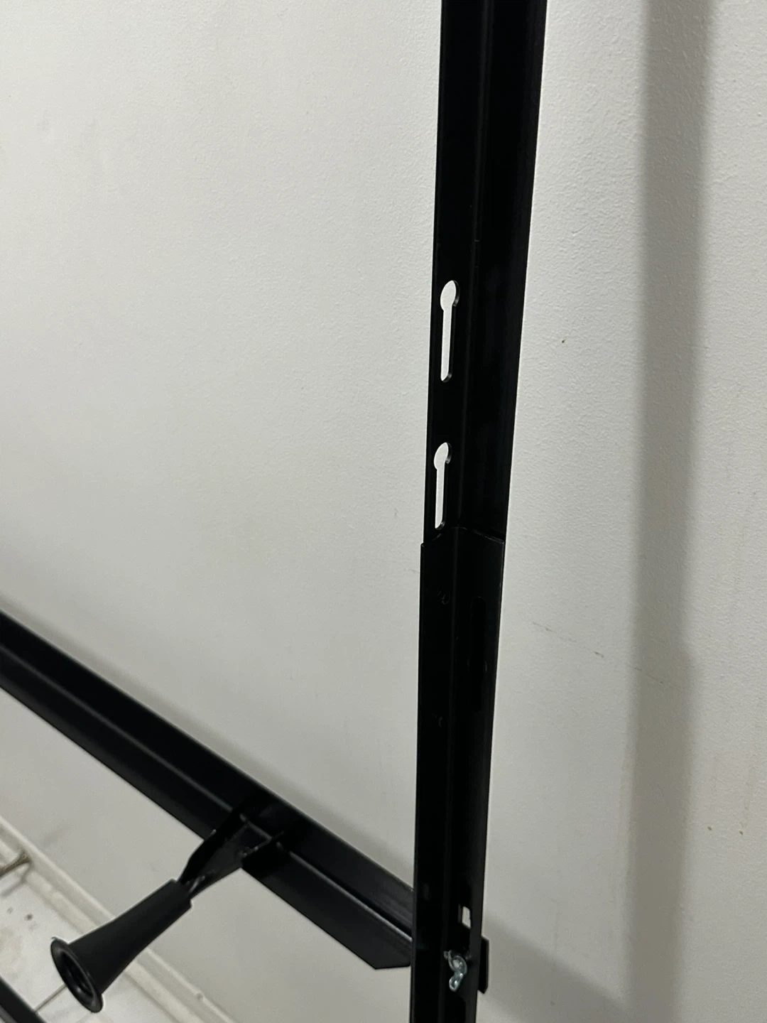 Selling a black metal bed frame. It's in great condition and is adjustable size. Was used to hold a king bed and box, can be used for queen bed too. It’s very sturdy!