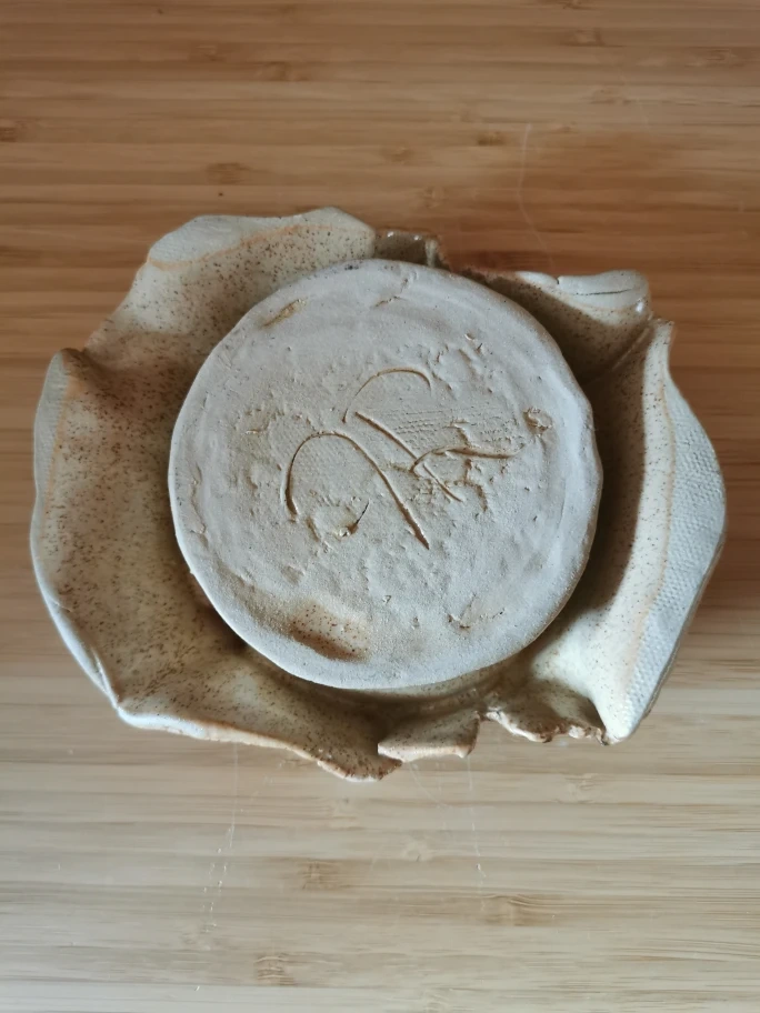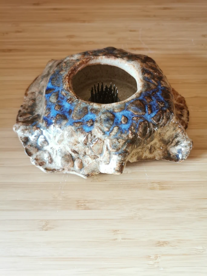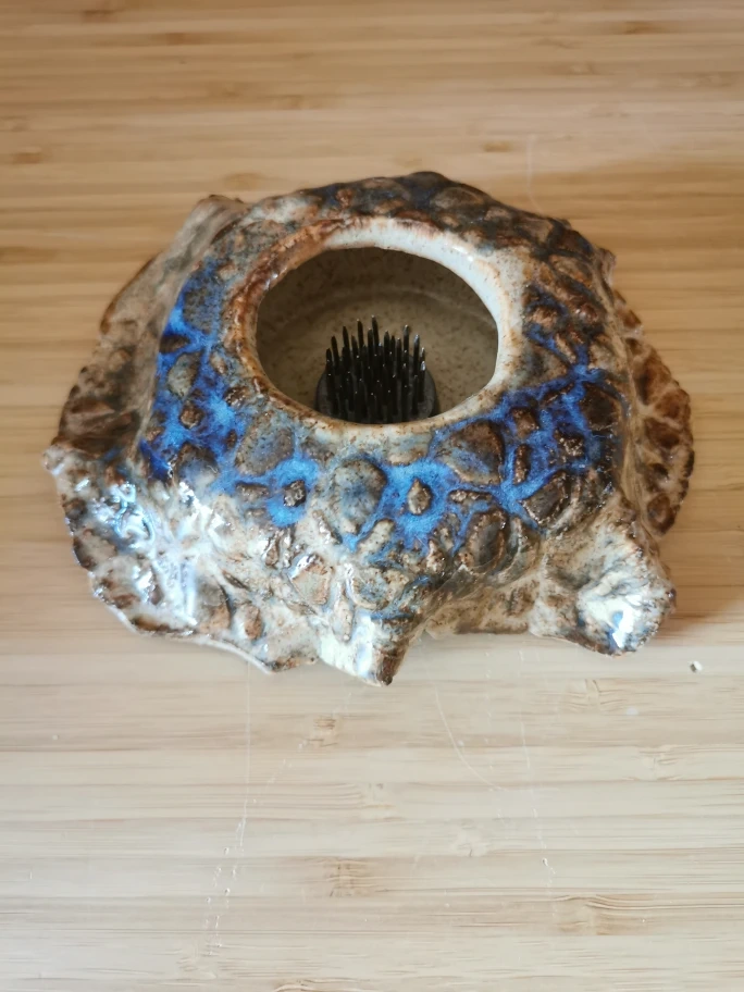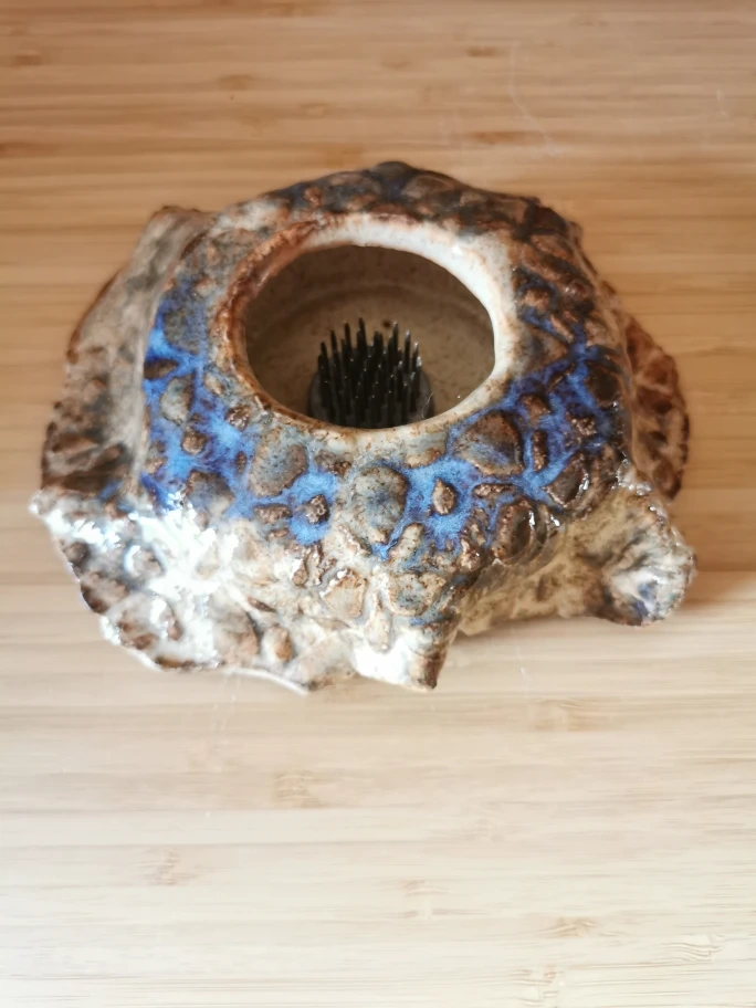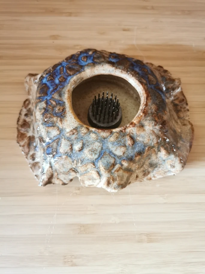 Beautiful Vintage Pottery Japanese Ikebana Vase With Flower Frog.