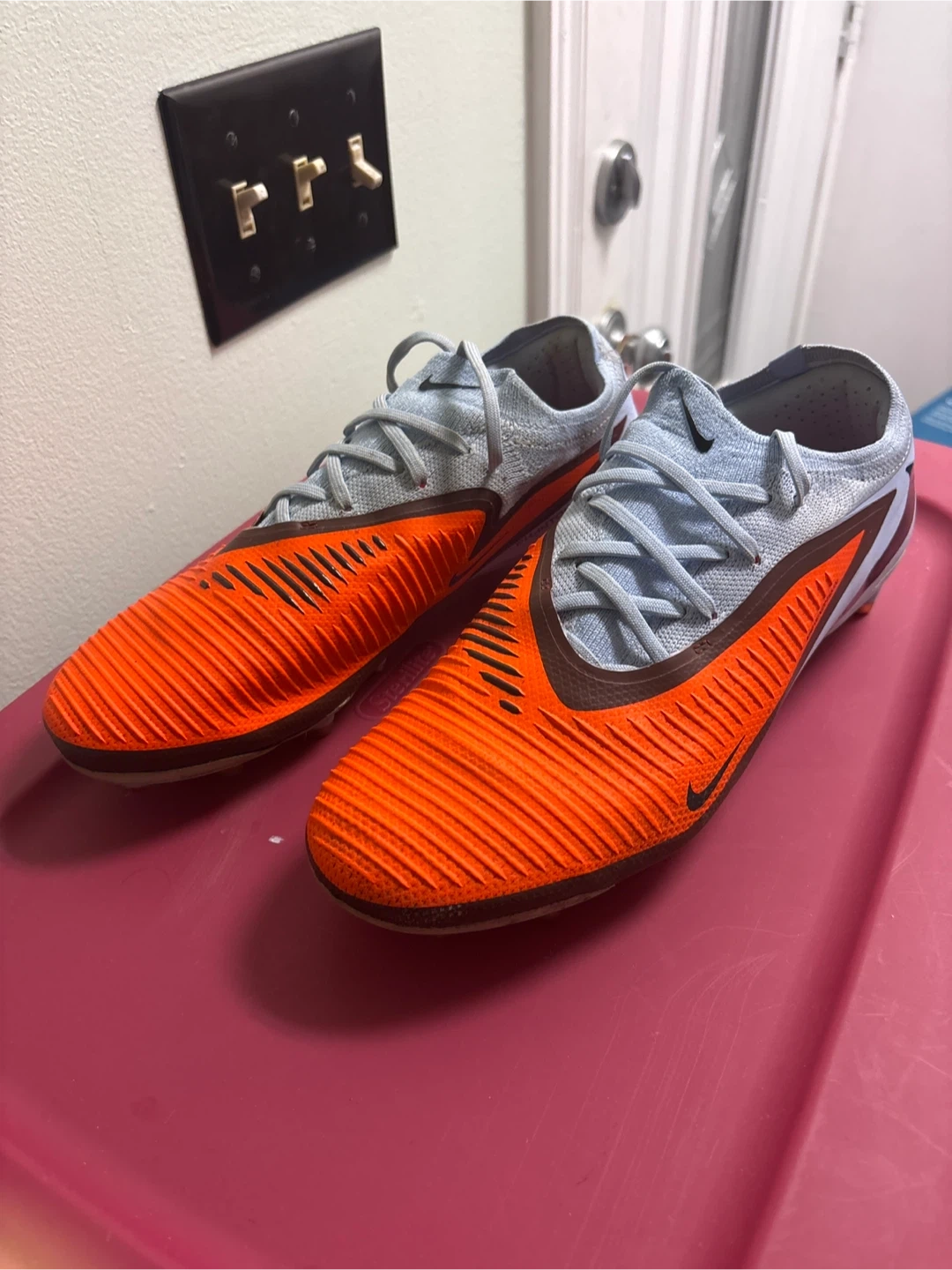 Selling a pair of Nike Phantom 6 pro ag cleats. (Really good condition.) It has been used about six times, and there’s some dirt on the spikes, but it can be wiped off with a wet wipe.