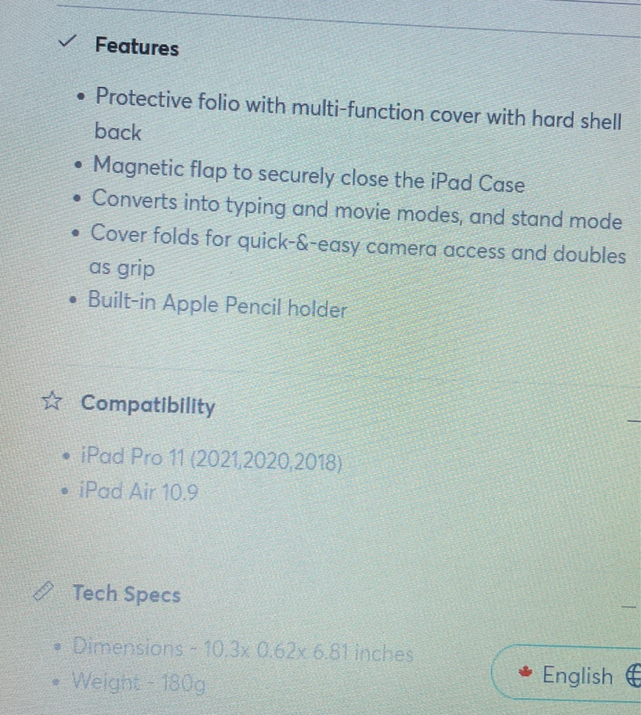 Transform the way you use your iPad with the Logiix Stance Secure case! The unique cover design allows for the iPad case to fold into a stand, raising the iPad by 3.5", making it ideal for video calls, movies, or for Continuity mode with a MacBook. The durable TPU color with rubberized edges shields the iPad from accidental drops and bumps while the strong magnetic front flap keeps the iPad's screen safe. The front cover also allows for multiple folding modes & viewing angles and also features an auto wake/sleep feature originally price is $79.99