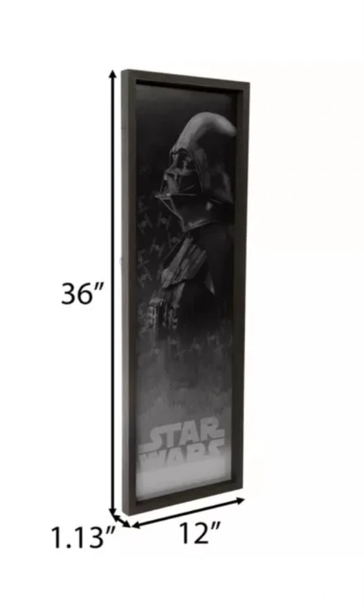 Selling a Star Wars Darth Vader framed wall art piece. It's a great addition to any fan's collection! The dimensions are 36" x 12" x 1.13"