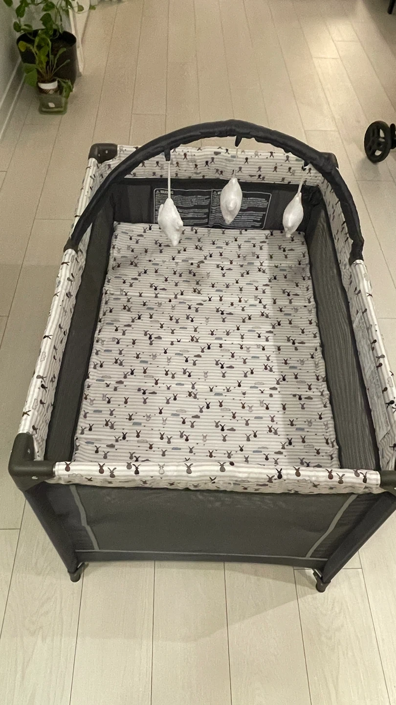 ✔️ Foldable & Lightweight Travel Playard with Mattress and Wheels (Rabbit print ).