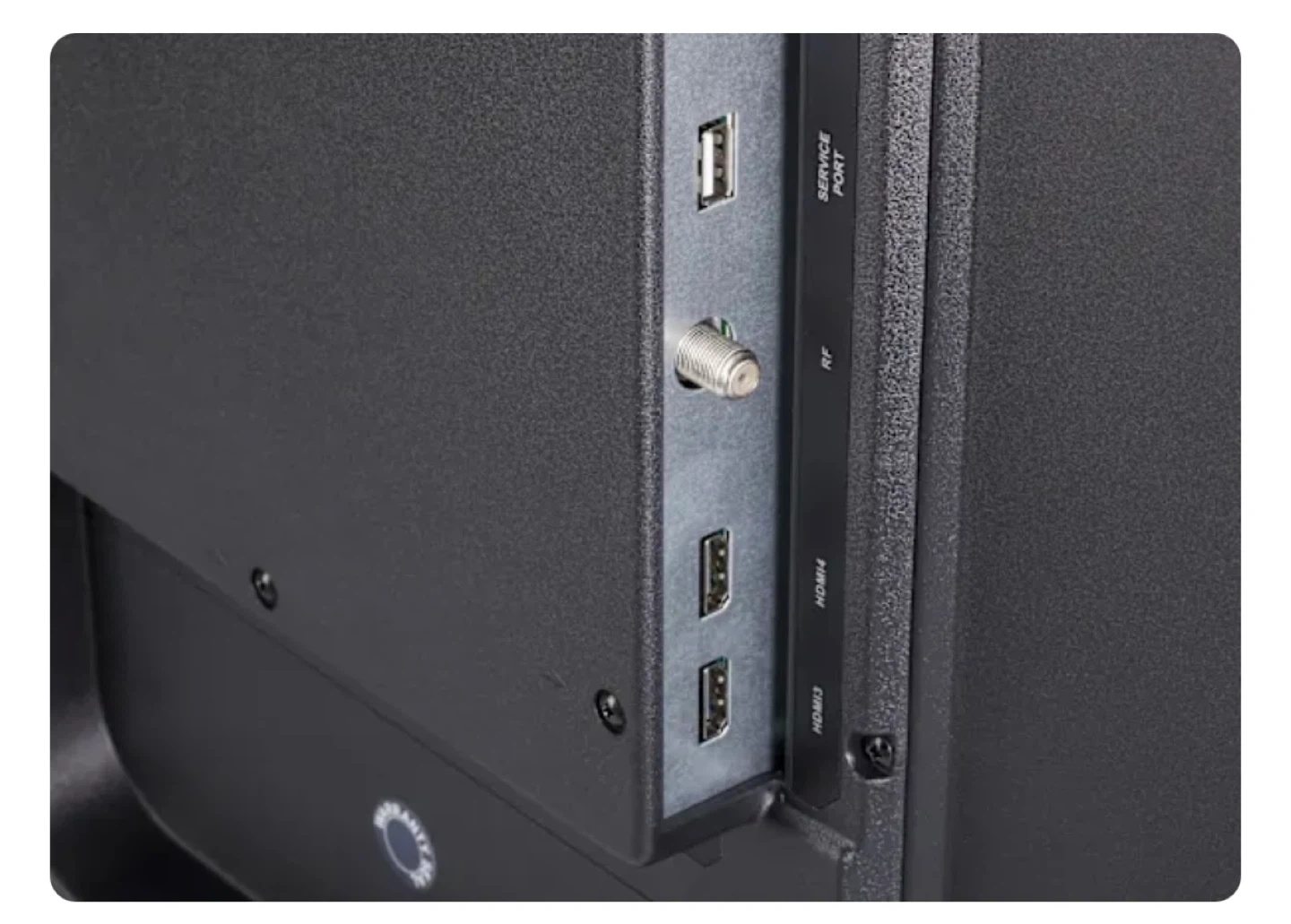 Selling an RCA television. It comes with a remote control and has multiple ports, including HDMI and USB A 49-inch LCD (LED) Ultra HD monitor with an LED backlight from RCA, with 2160p resolution, and a 60-hertz refresh rate, four HDMI inputs