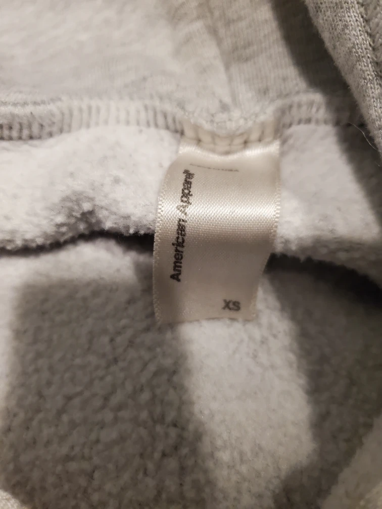 Selling a grey zip-up hoodie from American Apparel. It's a size XS and in great condition. Perfect for layering or just lounging around!