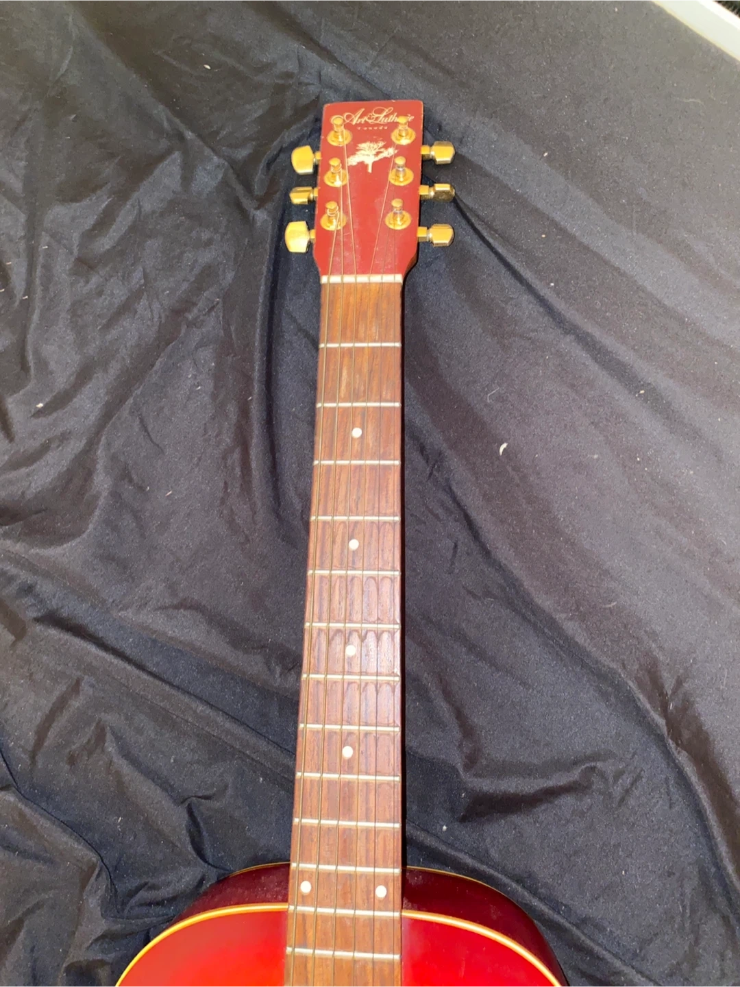 Selling an Art & Lutherie Ami acoustic guitar. It's in great shape and has a unique red finish! Perfect for beginners or experienced players alike