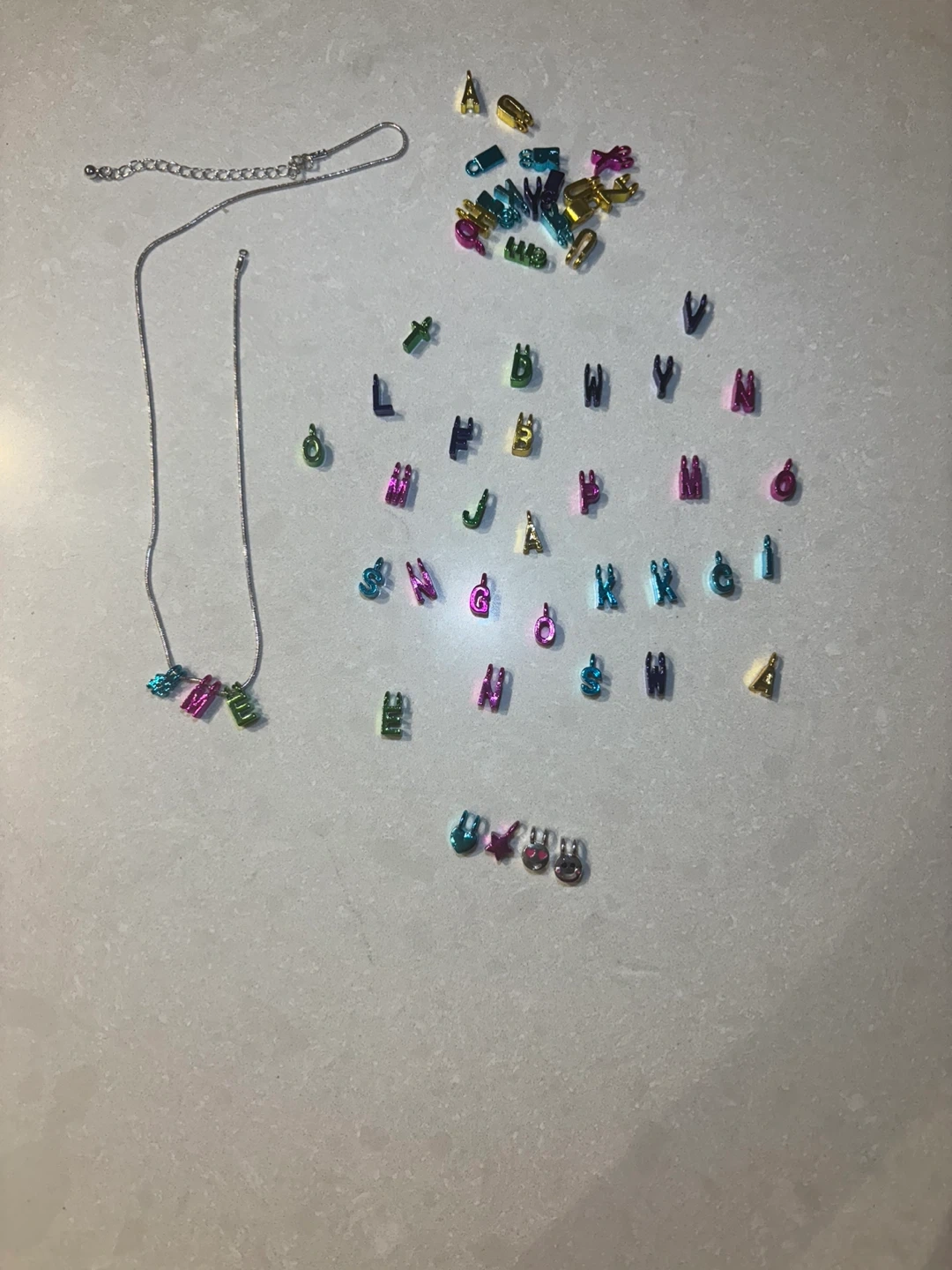 Get creative with this DIY alphabet letter necklace kit! It includes a silver chain and a variety of colorful letter charms to personalize your own necklace. Have fun spelling out names or creating unique messages!