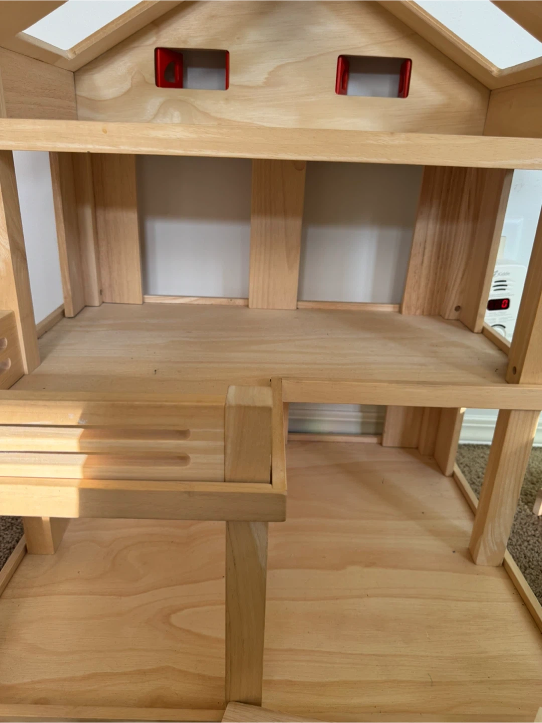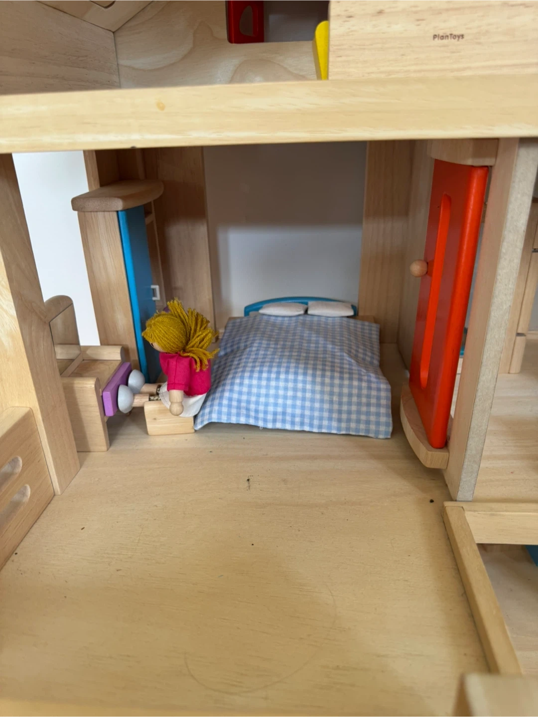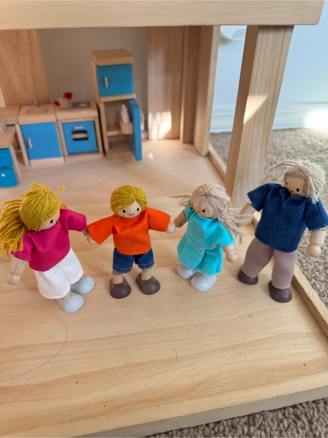 Selling a lovely wooden dollhouse by Plan Toys! It comes with some furniture and little dolls to play with. It's in great shape and ready for a new home!