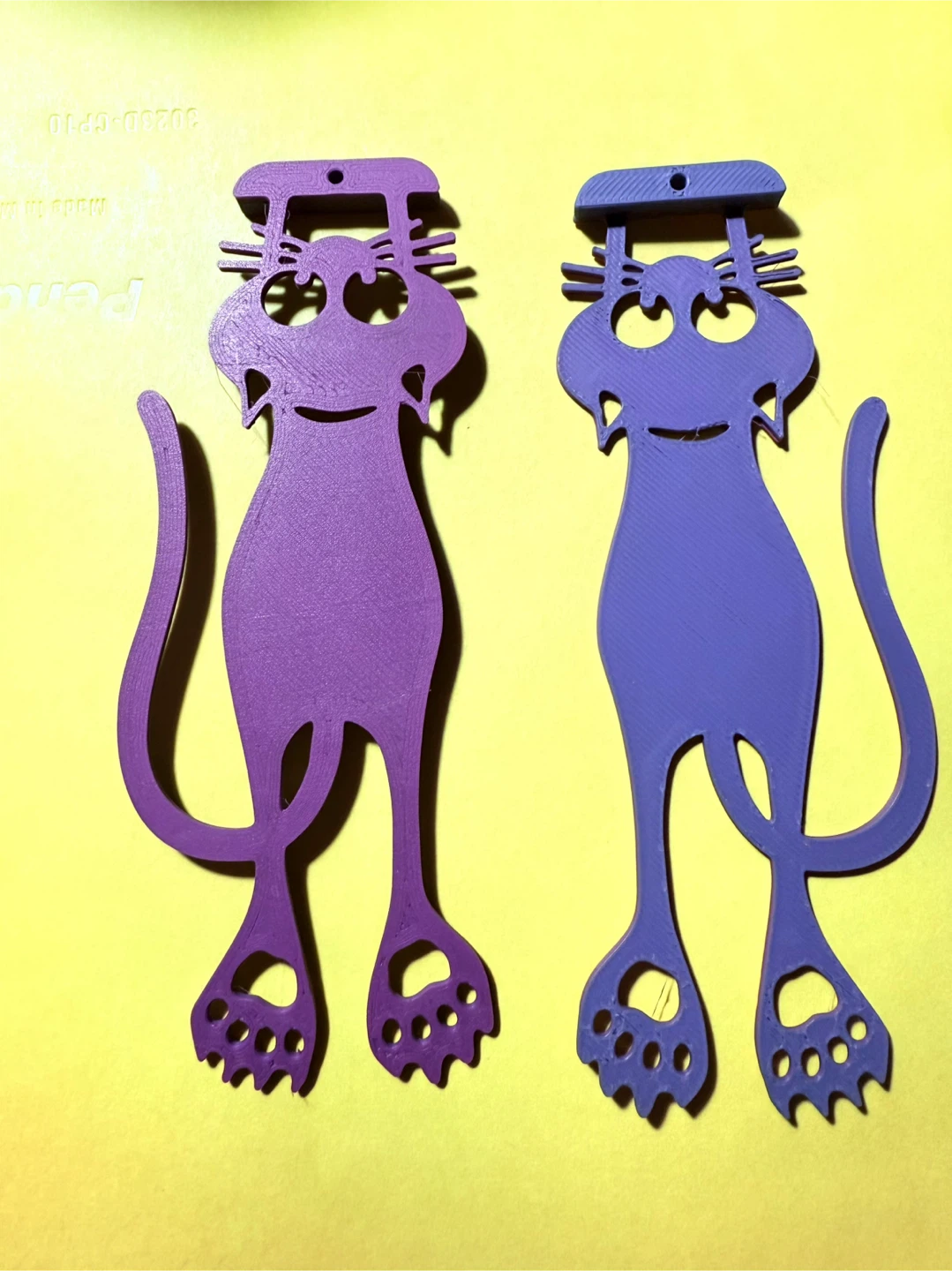 Here are some cute 3D printed cat bookmarks! They're purple and ready to mark your spot in your favourite book. Great for any cat lover or bookworm