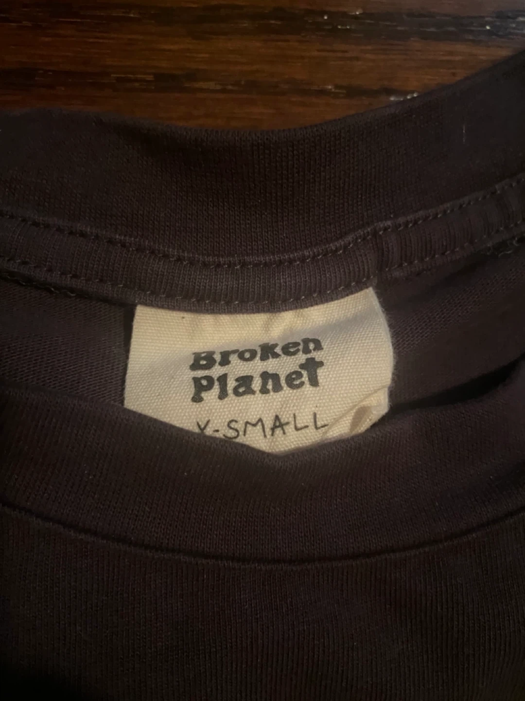 Selling a Broken Planet 'Into the Abyss' t-shirt in size XS. It's a cool design with a planet and stars graphic on the front and the Broken Planet logo on the back. Great for casual wear!