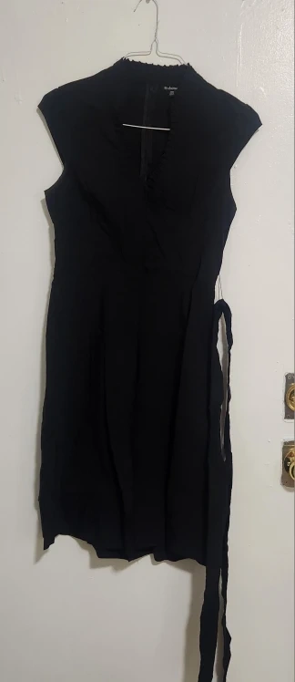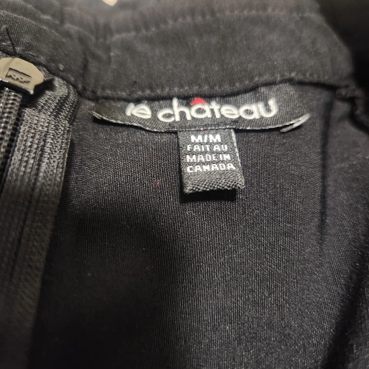 This is a Le Chateau black dress in size M. It's made in Canada and the material is 73% rayon, 24% nylon, and 3% spandex.