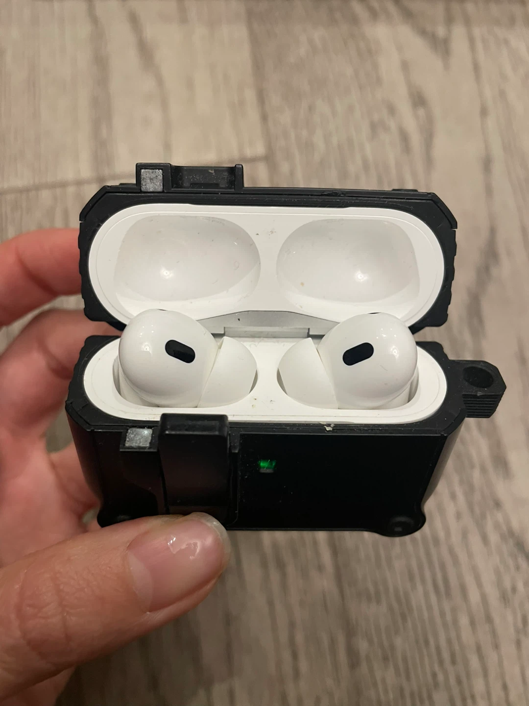 Selling my AirPods Pro 2. They come in a rugged black protective case. The AirPods themselves are in great condition and ready for a new owner!