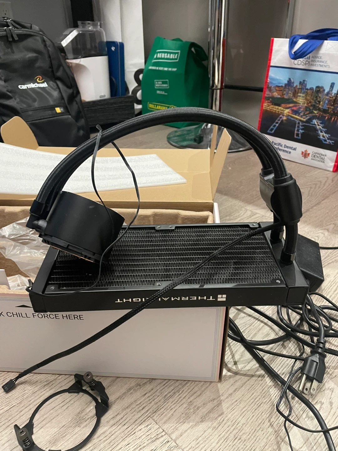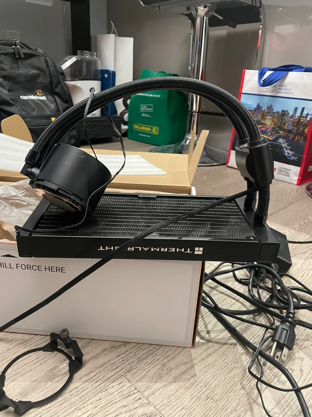 Selling a Thermalright liquid CPU cooler. It appears to be in good condition and comes with the mounting hardware shown in the pictures. Great for keeping your CPU cool during intense gaming or other demanding tasks!