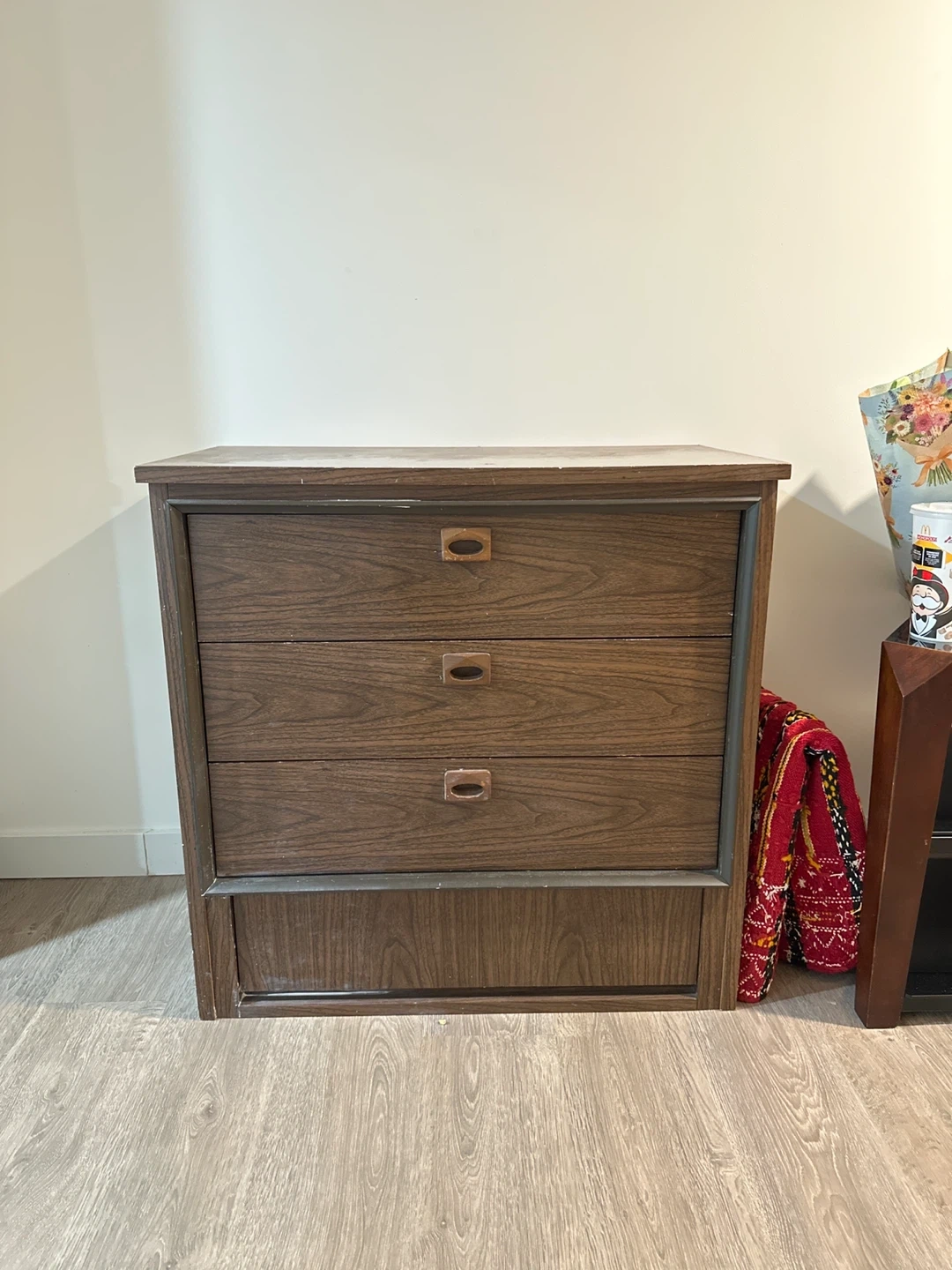 Selling a dresser from Aurier Meubles! It's a 4-drawer dresser with a wood-like finish. The dresser has a classic look and would be great for extra storage in any room.