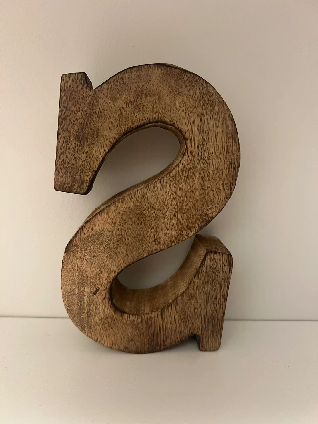 Selling a wooden letter 'S' decor piece! It's a lovely brown colour and would look great on a shelf or desk. One side is plain wood, and the other is filled with gold sequins for a bit of sparkle