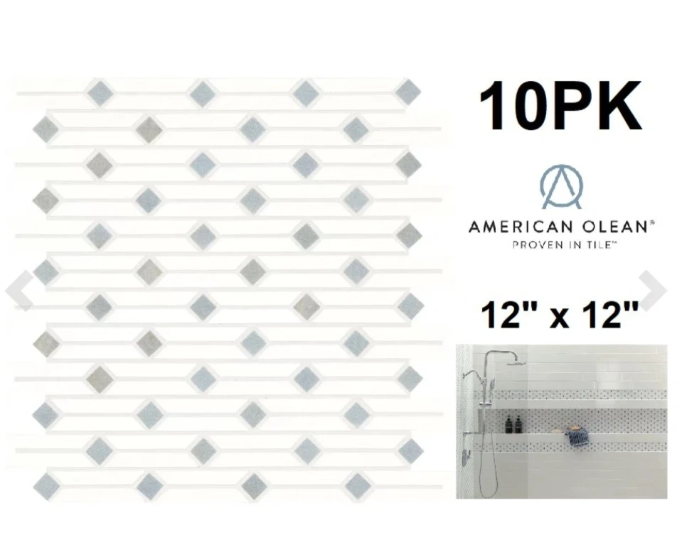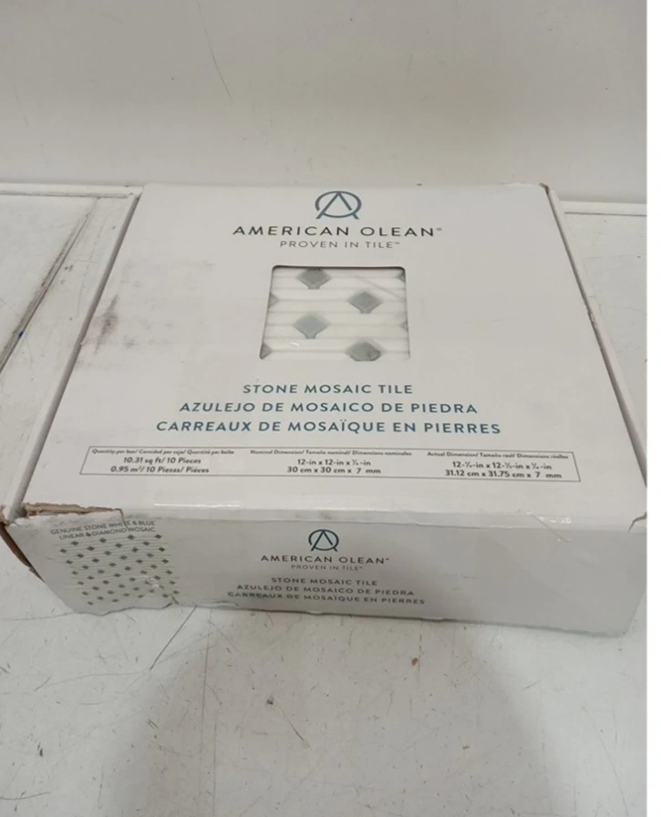 Selling a 10-pack of American Olean stone mosaic tiles. These tiles are 12" x 12" each and are brand new in the box. Perfect for adding a touch of elegance to any space!