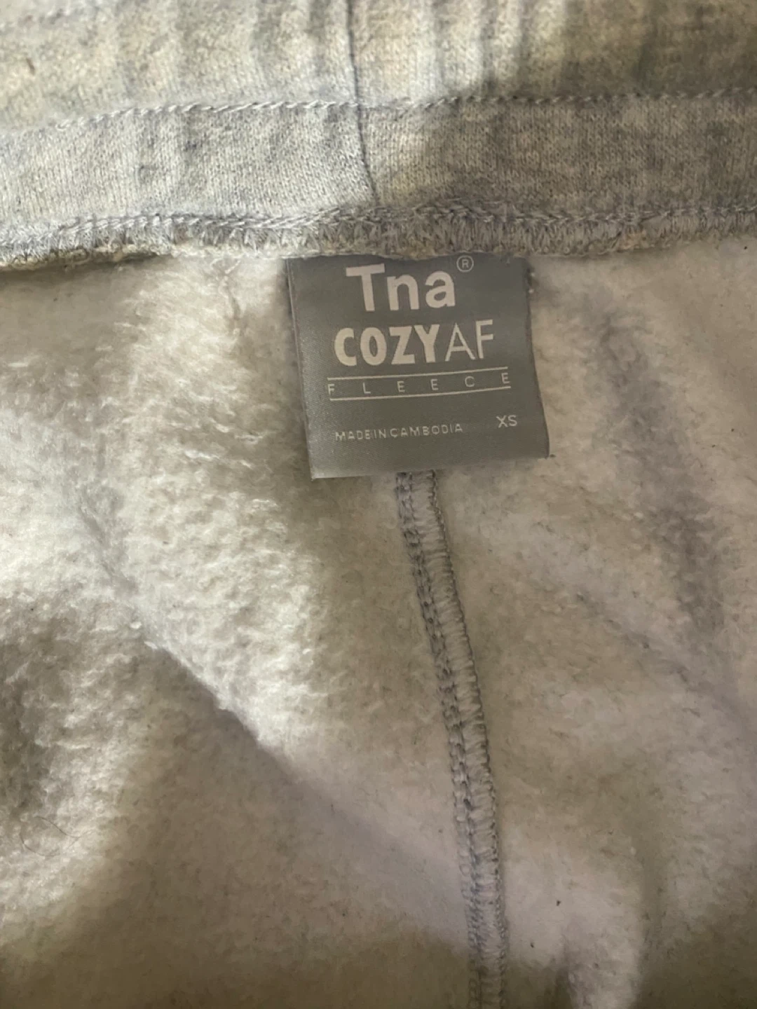 Selling a pair of Tna COZYAF fleece sweatpants in size XS! They're super comfy and in great condition. Perfect for lounging around the house or running errands